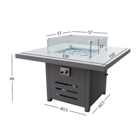 Puhta ja esteetilise visuaali rõhutamiseks on gaasipõleti ümbritsetud dekoratiivsete klaaskivikestega, millelet peegelduv leegi valgus lisab veelgi õdusust. Turvalisuse tagamiseks on gaasikamina ümber klaasist äär 57x57xH17cm.