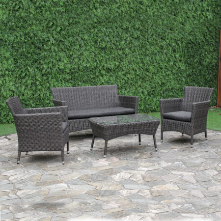 Aiamööblikomplekt BREMEN laud, diivan ja 2 tooli, hall.