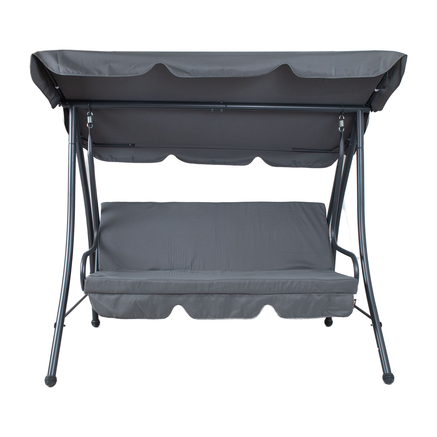 Kiige tugev ja stabiilne terasraam on viimistletud halli pulbervärviga.