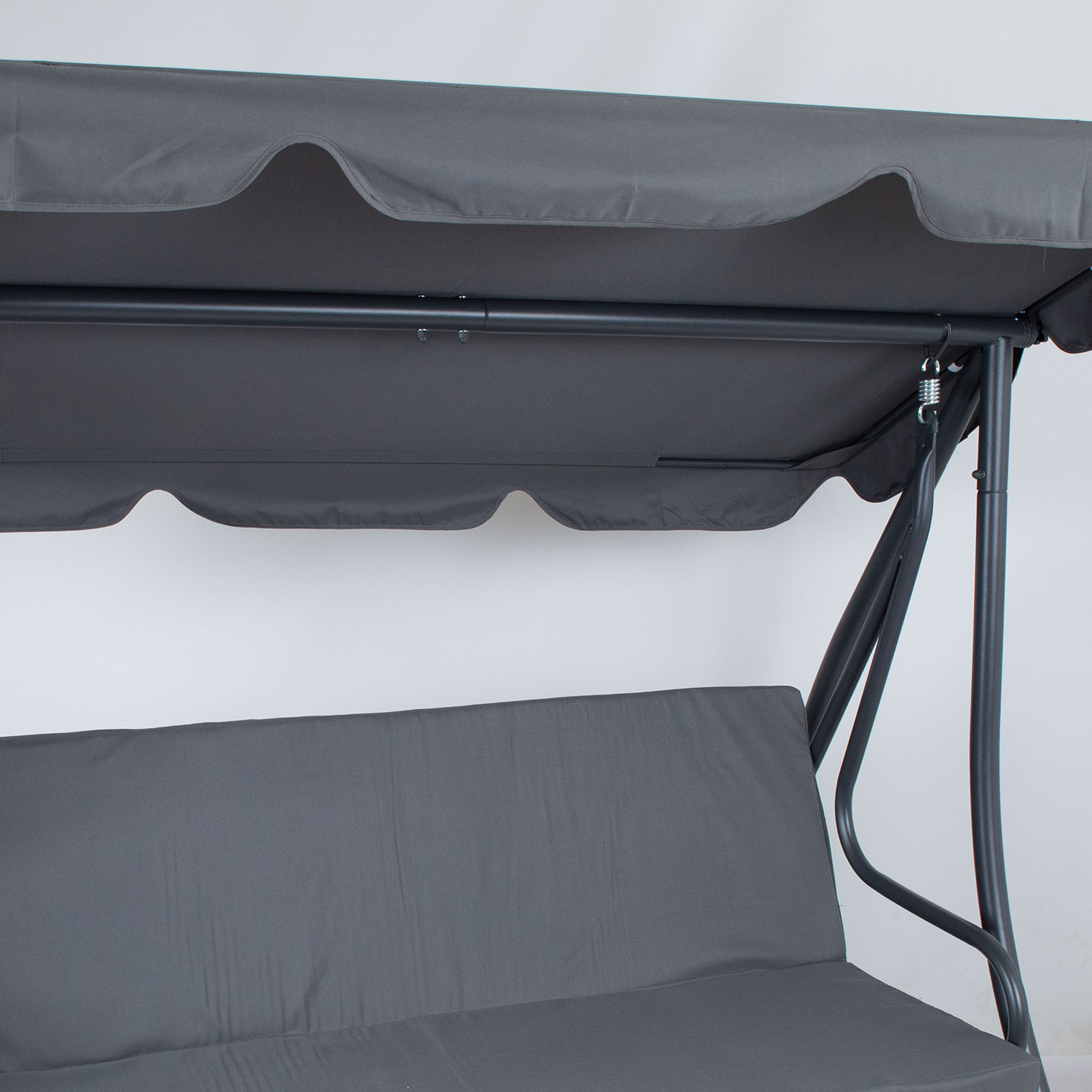 Kiige katuseraam on kaetud halli polüesterkangaga (180g/m²). Katuse kaldenurk on reguleeritav.