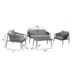 Aiamööbli komplekt WEILBURG laud 100x55xH45cm, diivan 150x77xH73cm, 2 tooli 70x77xH73cm, alumiinium