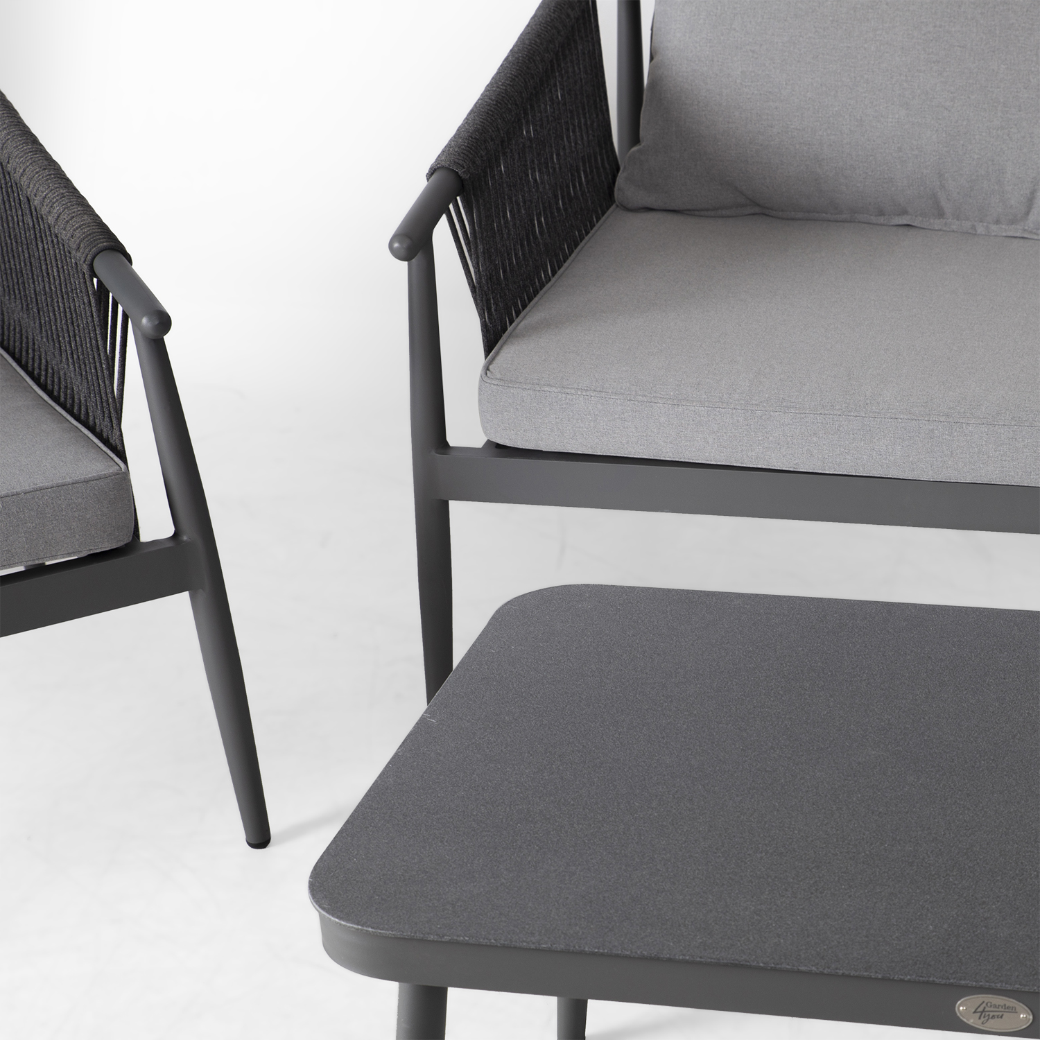 Diivan ja laud on valmistatud alumiiniumist ning viimistletud tumehalli pulbervärviga.