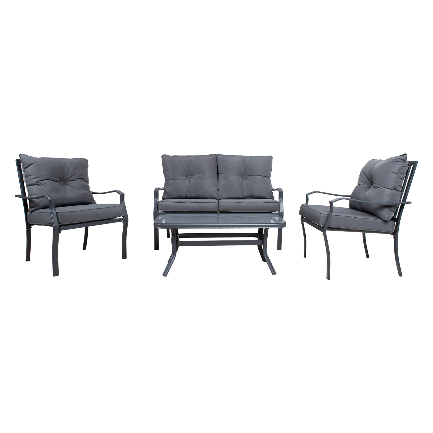Aiamööblikomplekt WATERS laud, diivan ja 2 tooli. Komplekti kõigi osade raamid on valmistatud terasest ja kaetud plastikpunutisega. Laua mõõdud on 89x52xH40cm, lauaplaat: 5mm läbipaistev karastatud klaas. Diivani mõõdud on 129x67xH77cm. Tugitooli mõõdud 62x67xH77cm. Padjad kuuluvad komplekti. Padjakatted on valmistatud hallist olefin kangast. Toode on muutlikes ilmastikutingimustes vastupidav ja väga lihtsalt hooldatav, kaitset ilmastikutingimuste eest vajavad ainult padjad. Välitingimustes kasutatava mööbli eluea pikendamiseks soovitame kasutada välimööbli katteid. HOIUSTAMINE: suvehooaja lõppedes soovitame aiamööblit hoiustada siseruumides. Puhastage ja kuivatage mööbel enne hoiule panekut. Kasutage hoiustamiseks kuiva ning hea ventilatsiooniga ruumi.