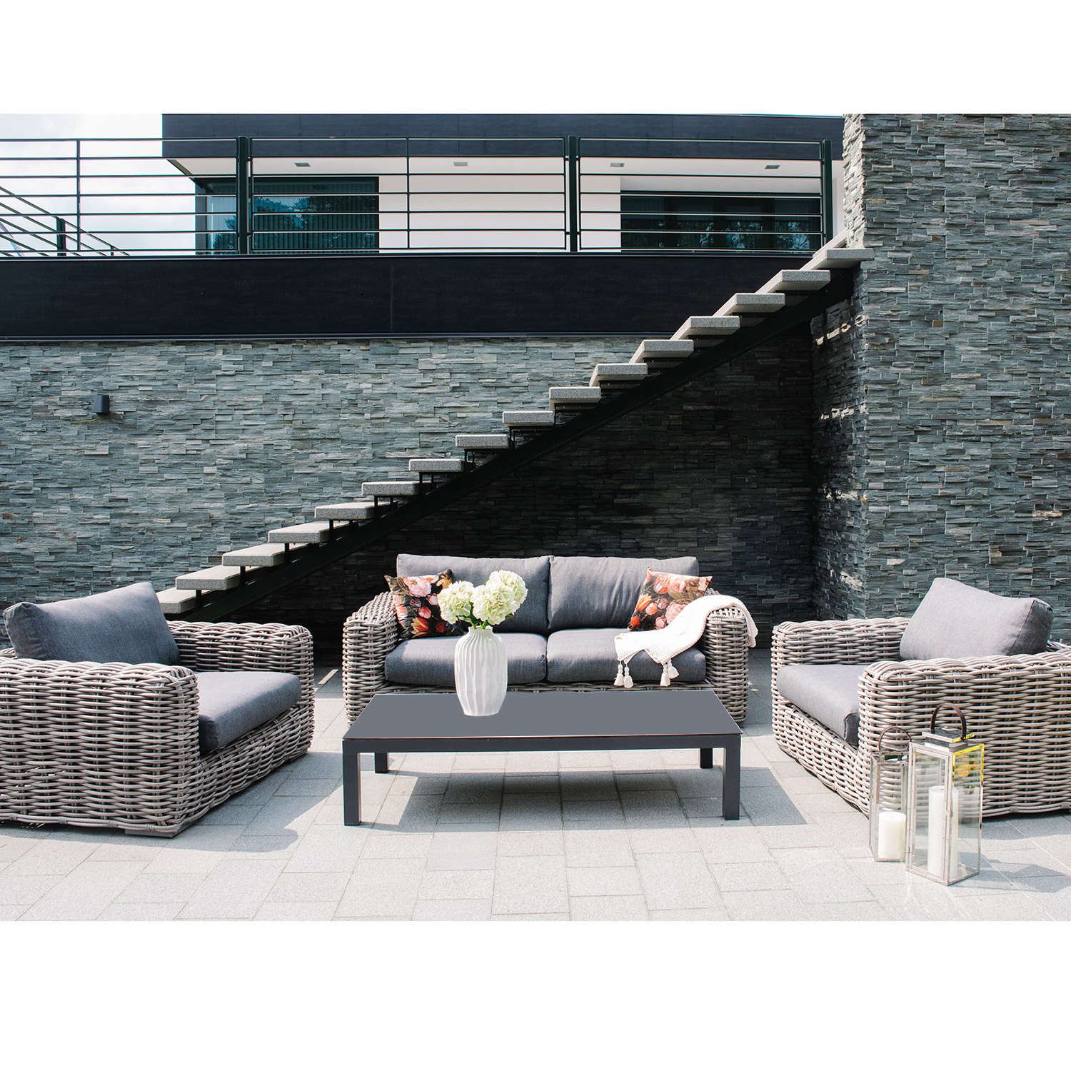 Aiamööblikomplekt CALISTA laud, diivan ja 2 tooli, hall