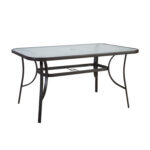 Laua mõõdud on 150x90xH70cm. Lauaplaat: 5mm läbipaistev laineline klaas.