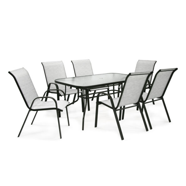Aiamööblikomplekt DUBLIN laud ja 6 tooli, hõbehall.