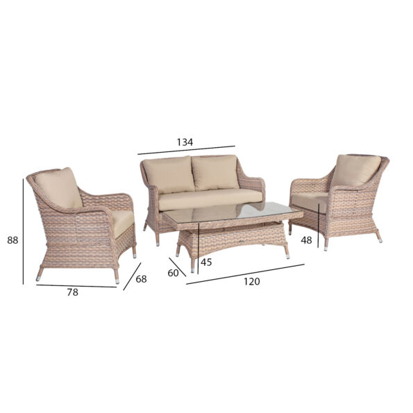 Aiamööblikomplekt EDEN laud, diivan ja 2 tooli, bee˛