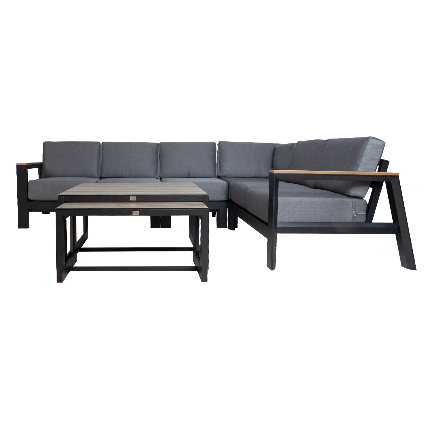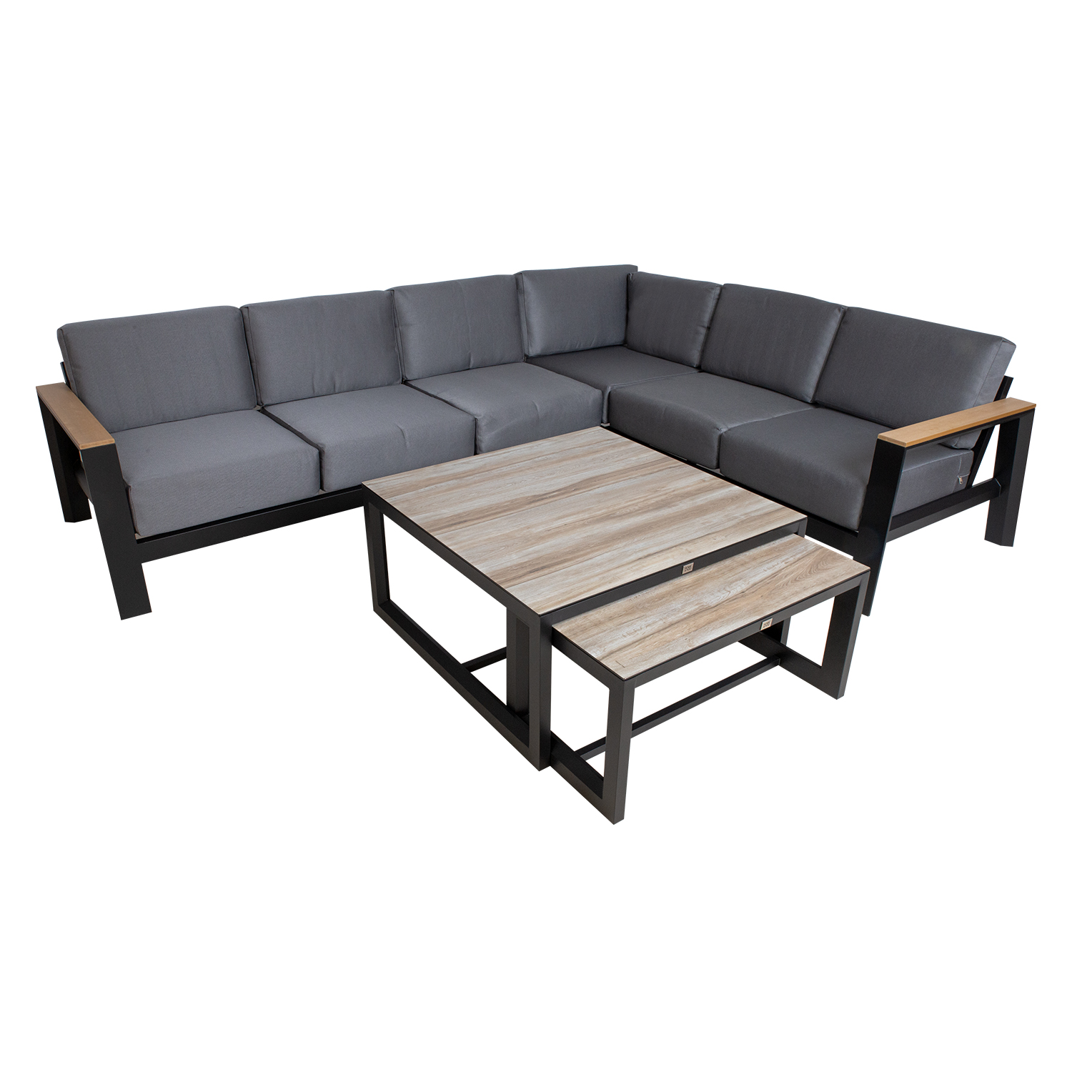 Aiamööblikomplekt FELINO nurgadiivan ja 2 lauda, must.