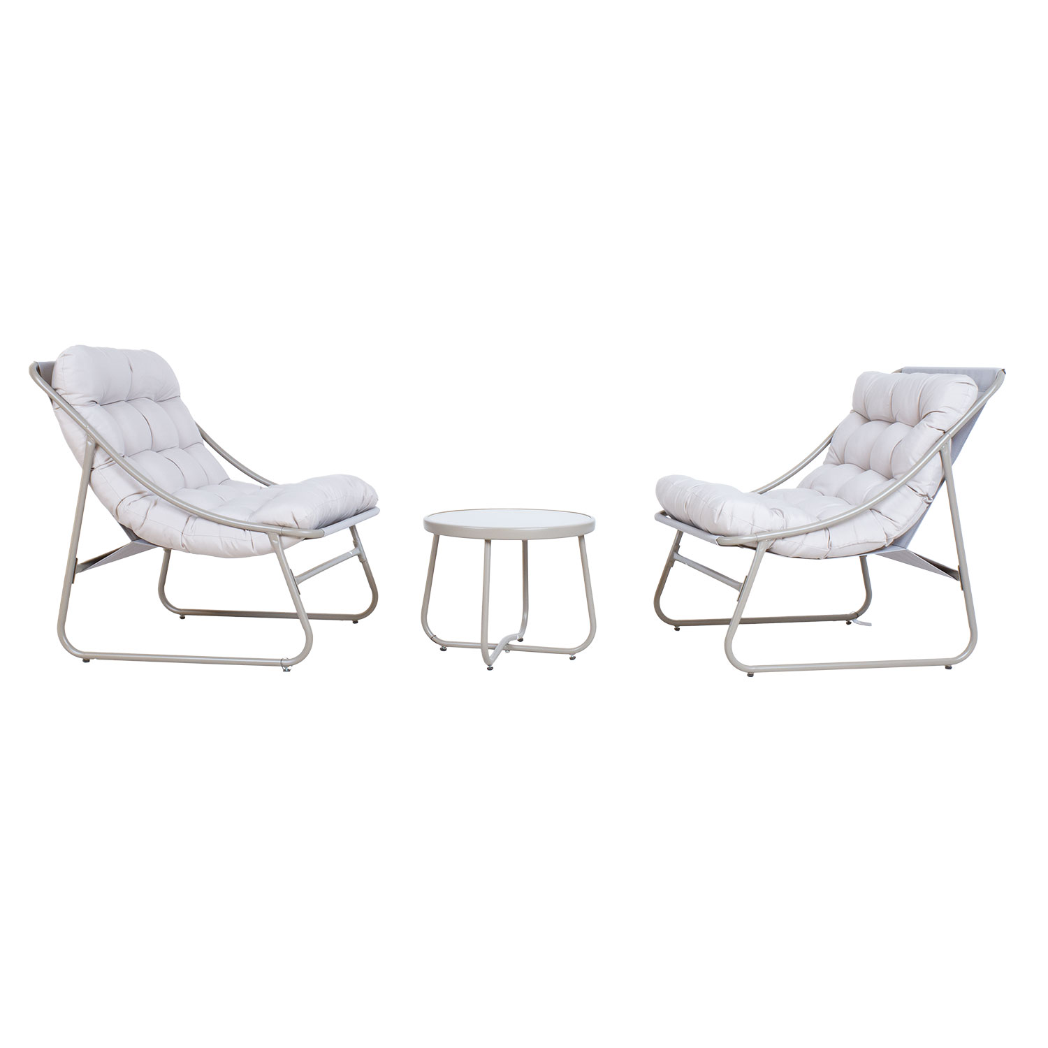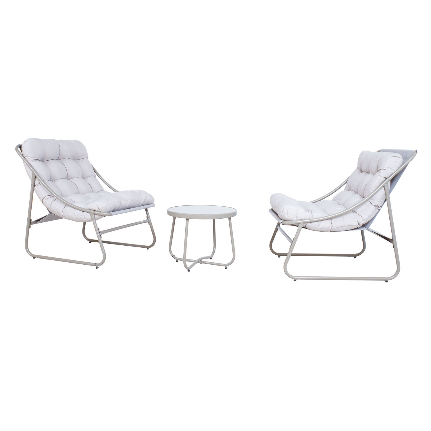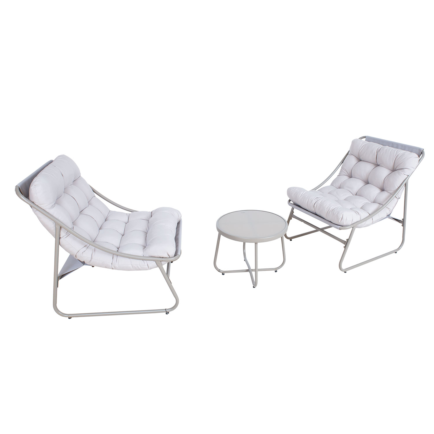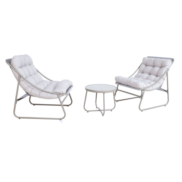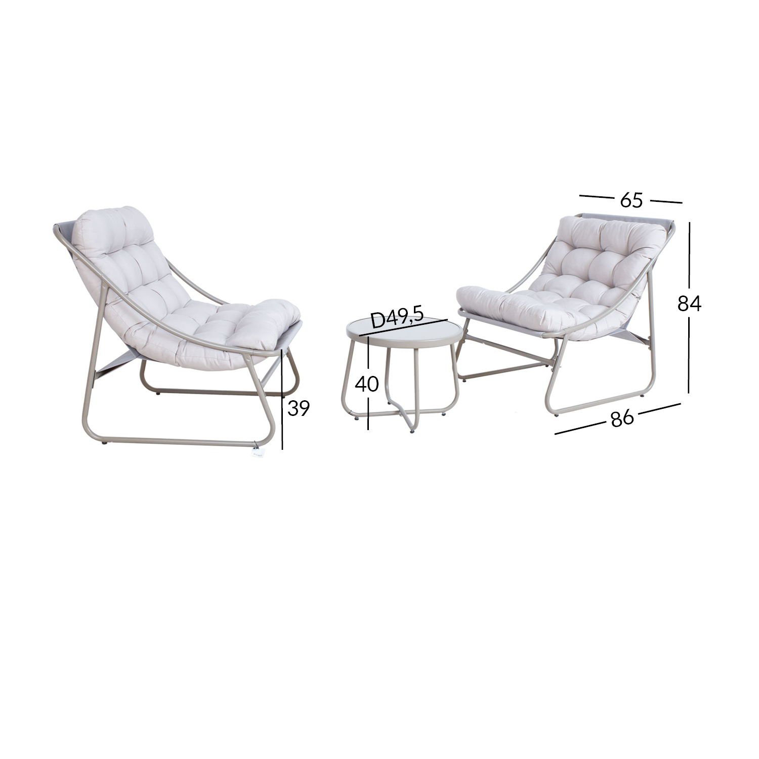 Kokkupandav rõdukomplekt YOLANDA 2 tooli ja laud, helehall.