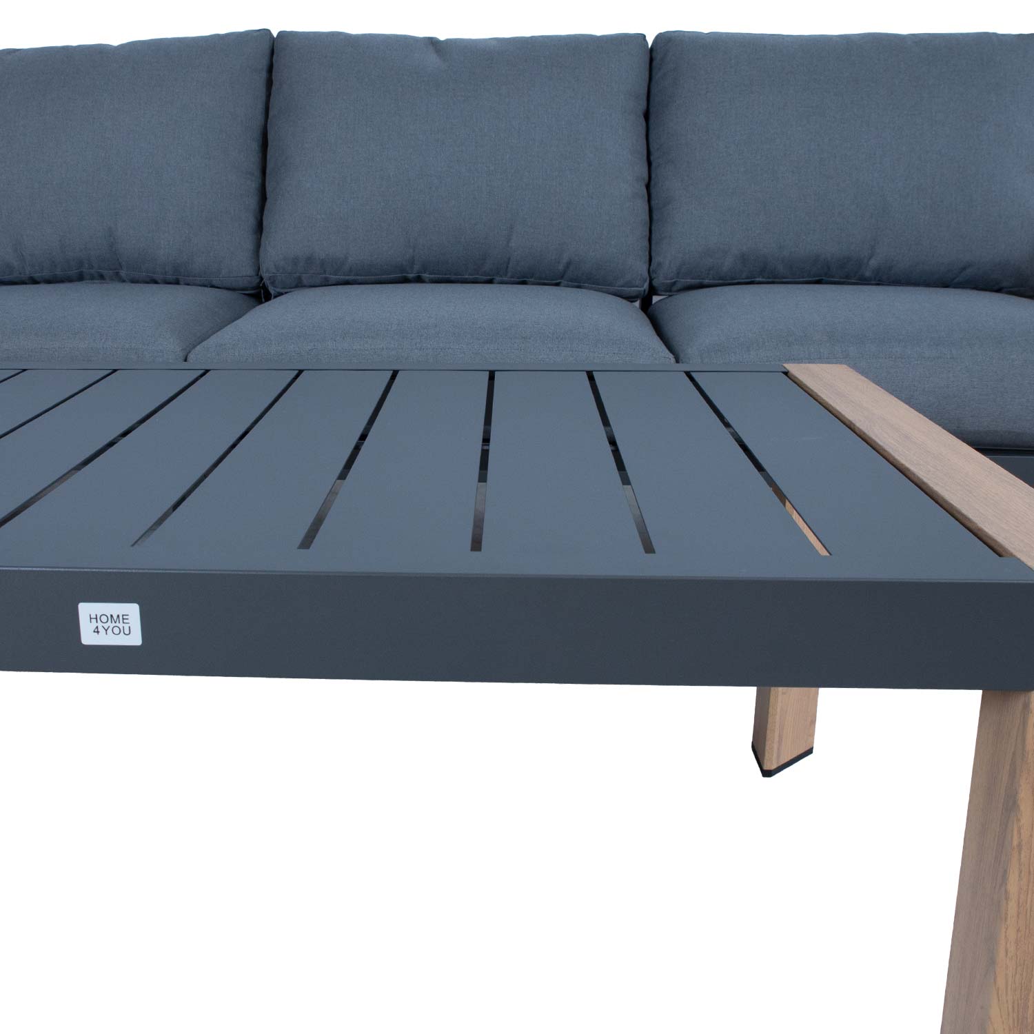 Komplekti kõik osad on valmistatud alumiiniumist. Diivani moodulite alusraamid ja lauaplaat on viimistletud halli pulbervärviga. Diivani käetugede ja laua jalgade ja naturaalse tiikpuu tekstuuri ja värvust meenutav pinnaviimistlus on saavutatud soojusülekande printimise meetodil. Puidu tekstuuri ülekandmiseks alumiiniumpinnale asetatakse ülekandekile alumiiniumprofiili peale ja seejärel allutatakse kõrgele kuumusele. Protsessi käigus viiakse tint ülekandekilelt alumiiniumpinnale, luues puidutaolise efekti. Sel viisil viimistletud pind on väga vastupidav ja talub hästi nii päikesekiirgust, kui kergemaid kriimustusi.