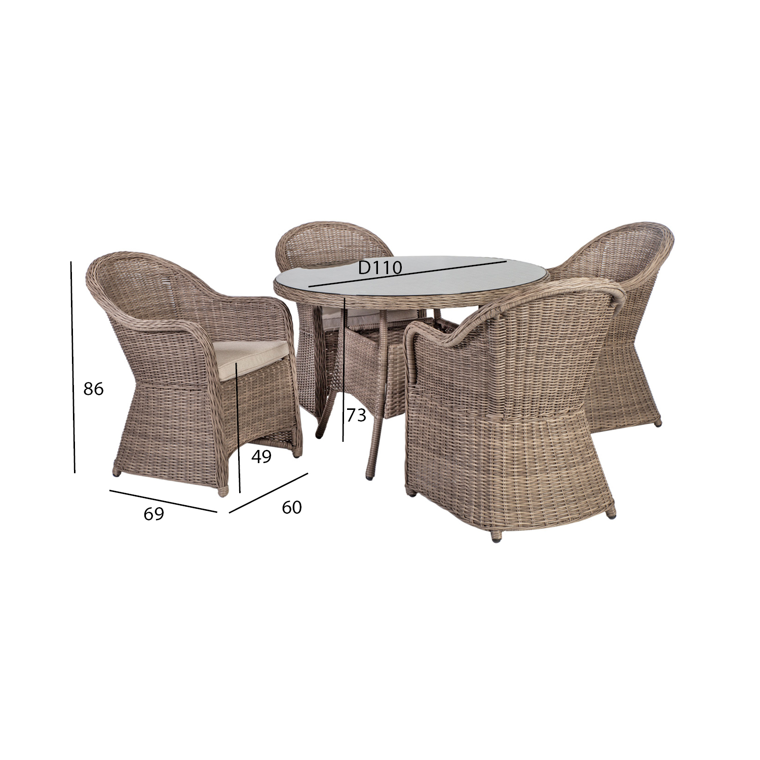 Aiamööblikomplekt TOSCANA laud ja 4 tooli