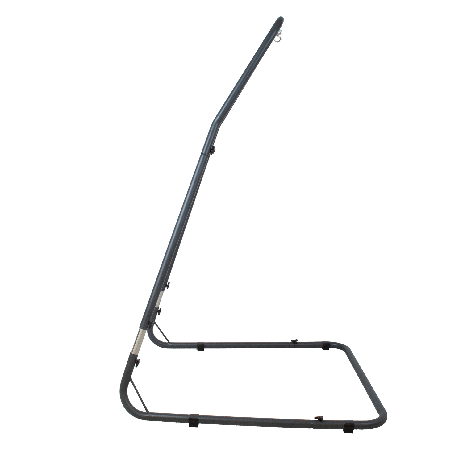 Alus rippkiigele 320/370x90xH120/140cm, tumehall. Reguleeritava kõrguse ja pikkusega universaalne alus sobib erinevatele rippkiikedele. Alus on valmistatud terasest ja viimistletud tumehalli pulbervärviga. Ühe tugijala kõrvale paigaldatud rataste abil on rippkiige alust lihtne teisalda. Kaalupiirang 120kg. Toote eluea pikendamiseks soovitame see suvehooaja lõppedes lahti monteerida ja hoiustada kuivas, hea ventilatsiooniga ruumis.
