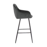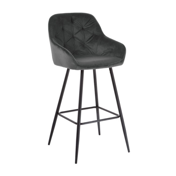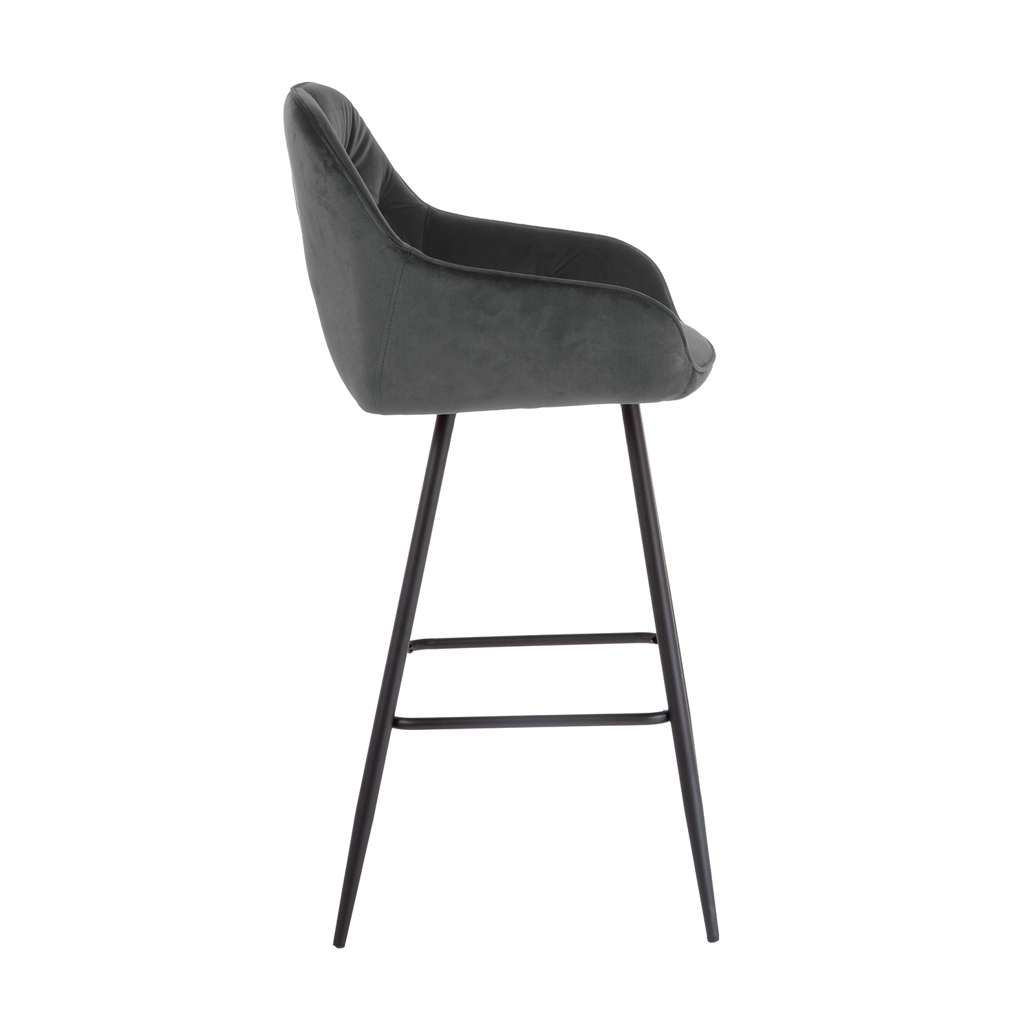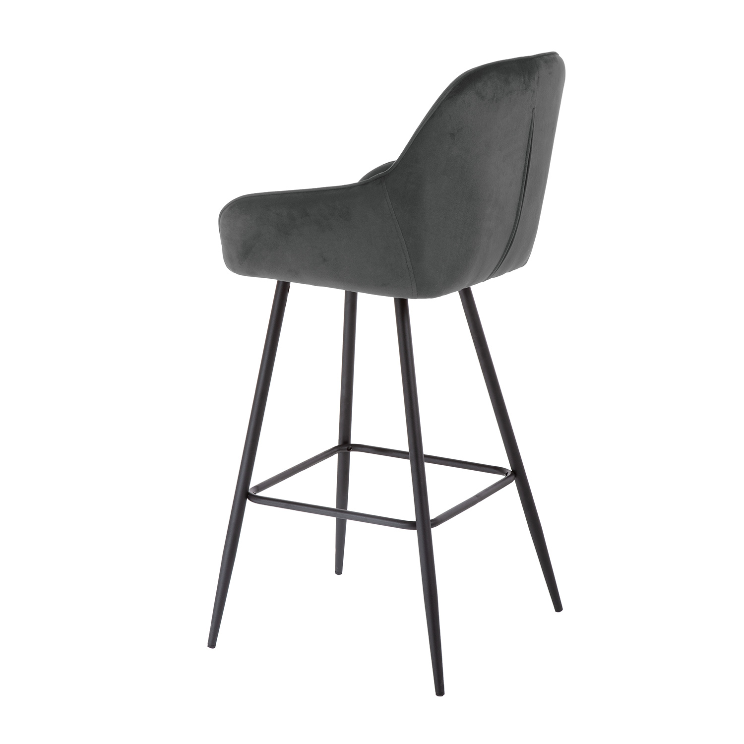 Baaritool BRITA, hall samet. Mugava vormiga painutatud vineerist iste on kergelt polsterdatud ja kaetud sametkangaga. Kattematerjal: 100% polüester, 260g/m². Martindale 25 000. Tooli jalad ja alusraam on valmistatud metallist ja viimistletud musta pulbervärviga. Tooli üldmõõdud on 53x55xH109cm, istme laius 38cm, istme sügavus 43cm, istme kõrgus 75cm. Seljatoe kõrgus 37cm, jalatoe kõrgus 29cm. Kaalupiirang 120kg.
