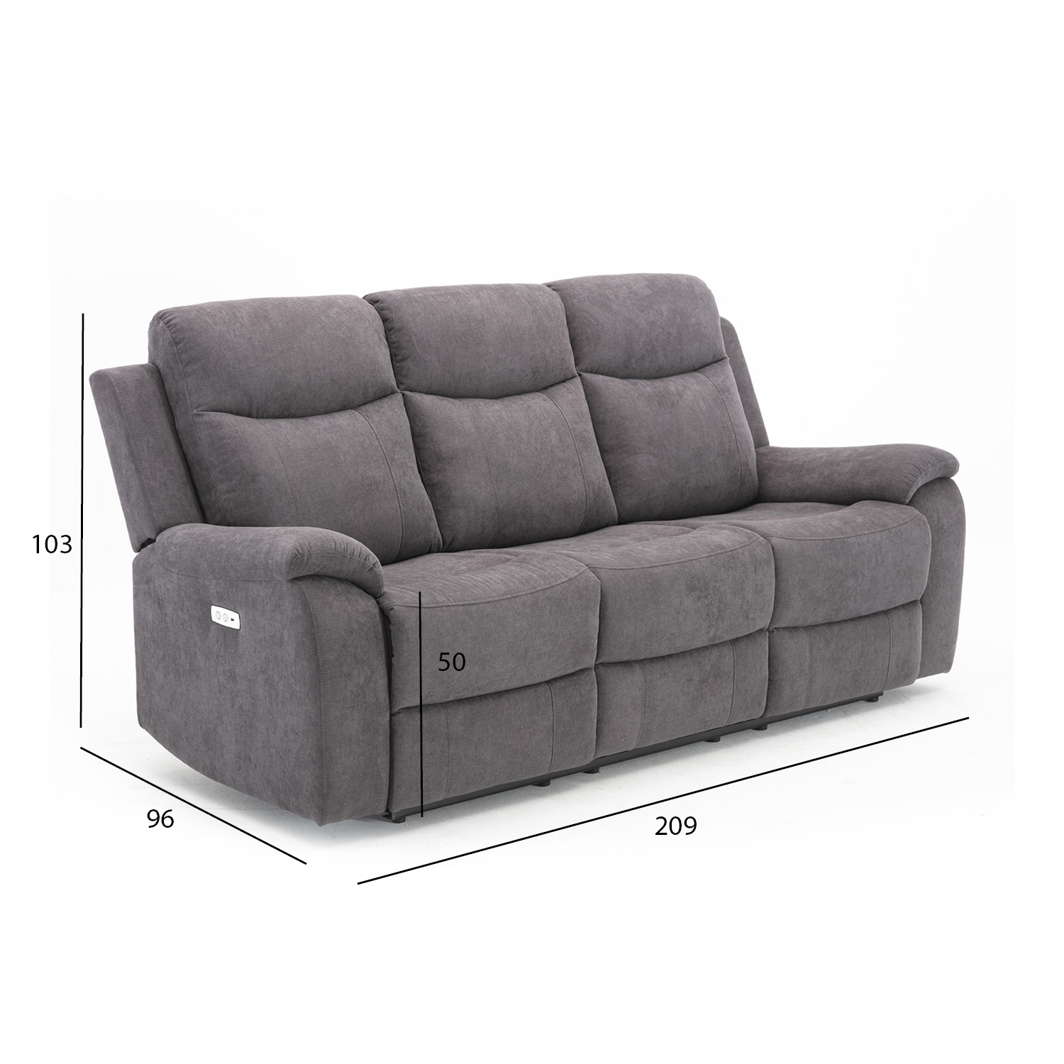 Diivan MILO 3-kohaline elektriline recliner 209x96xH103cm, hall
