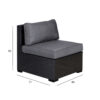 Diivani vahemoodul GENEVA 62x81xH78cm, hall. Mooduldiivan on suurepärane võimalus luua sobiva kuju ja suurusega istumiskoht, mida on lihtne muuta ja ümber paigutada. Diivani raam on valmistatud alumiiniumist ja kaetud plastikpunutisega. Padjakatted on valmistatud hallist polüesterkangast. Istmepadja mõõdud on 62x63xH10cm, seljatoepadja mõõdud 65x45x10cm. Lukuga suletavad padjakatted on eemaldatavad ja pestavad. Istme kõrgus raami ääreni 33cm, koos padjaga 43cm. Toode on muutlikes ilmastikutingimustes hästi vastupidav ja lihtsalt hooldatav. Kaitset ilmastikuolude eest vajavad ainult padjad. Välitingimustes kasutatava mööbli eluea pikendamiseks soovitame kasutada välimööbli katteid. Moodulite ühendusklambrid ei kuulu komplekti. HOIUSTAMINE: suvehooaja lõppedes soovitame aiamööblit hoiustada siseruumides. Puhastage ja kuivatage mööbel enne hoiule panekut. Kasutage hoiustamiseks kuiva ning hea ventilatsiooniga ruumi.