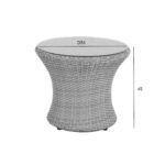 Abilaud WICKER 50x50xH45cm, cappuccino. Raam ja jalad on valmistatud alumiiniumist ja kaetud plastikpunutisega. Lauaplaat: 5mm karastatud läbipaistev klaas. Toode on muutlikes ilmastikutingimustes vastupidav ja väga lihtsalt hooldatav. HOIUSTAMINE: suvehooaja lõppedes soovitame aiamööblit hoiustada siseruumides. Puhastage ja kuivatage mööbel enne hoiule panekut. Kasutage hoiustamiseks kuiva ning hea ventilatsiooniga ruumi.