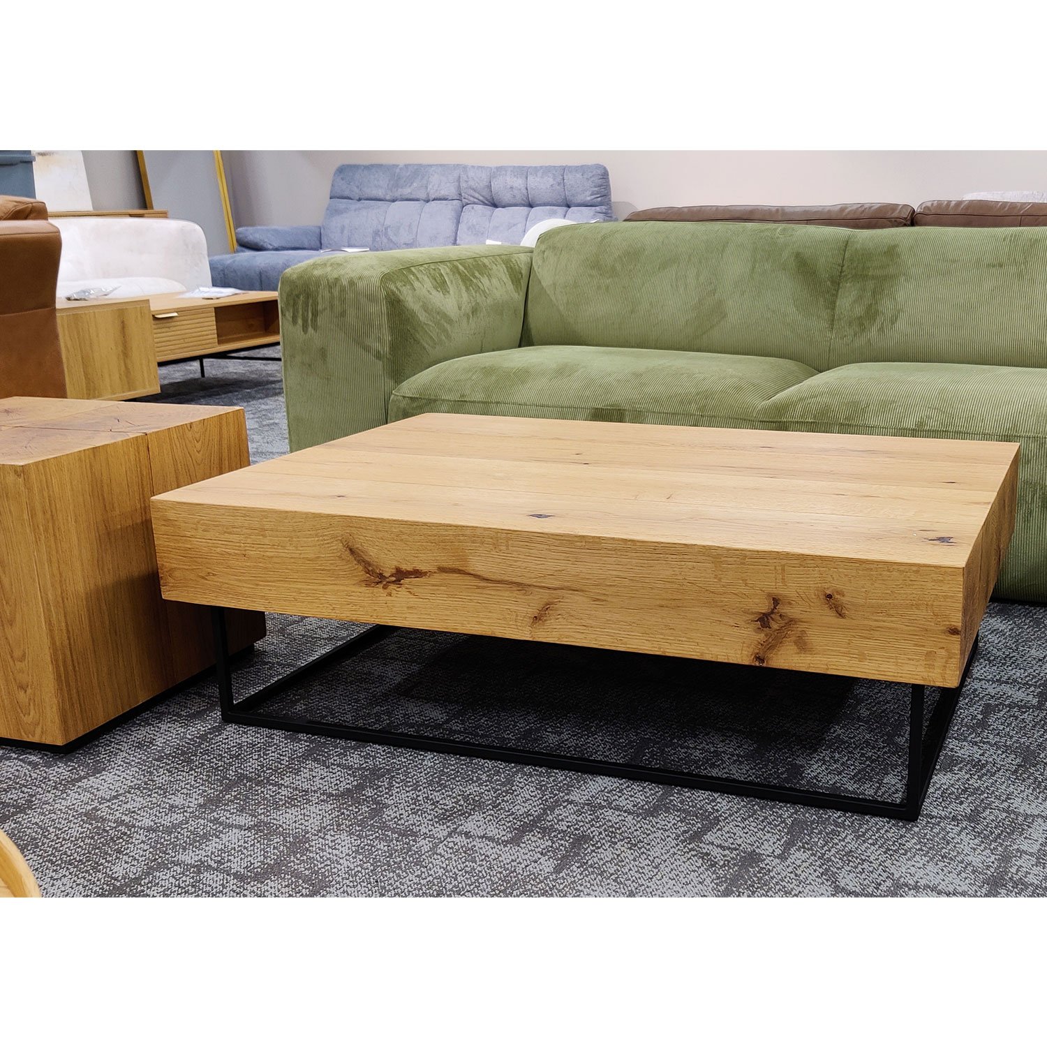 Diivanilaud BRONTE 120x80xH40cm, tamm. Soliidne, rustikaalse välimusega laud sobib suurepäraselt nii moodsa kui klassikalise interjööriga. Laua korpus on valmistatud MDF plaadist ning kaetud 6mm naturaalse tammespooniga. Laua otsi kaunistavad puidu südamiku ristlõiked, mille väikesed praod, aastaringid ja säsikaared annavad aimu puu elukaarest. Puidu pind on viimistletud õlivahaga. Laua must terasest alusraam on emailviimistlusega. Toote valmistamiseks on kasutatud FSC sertifikaadiga puitmaterjali.