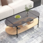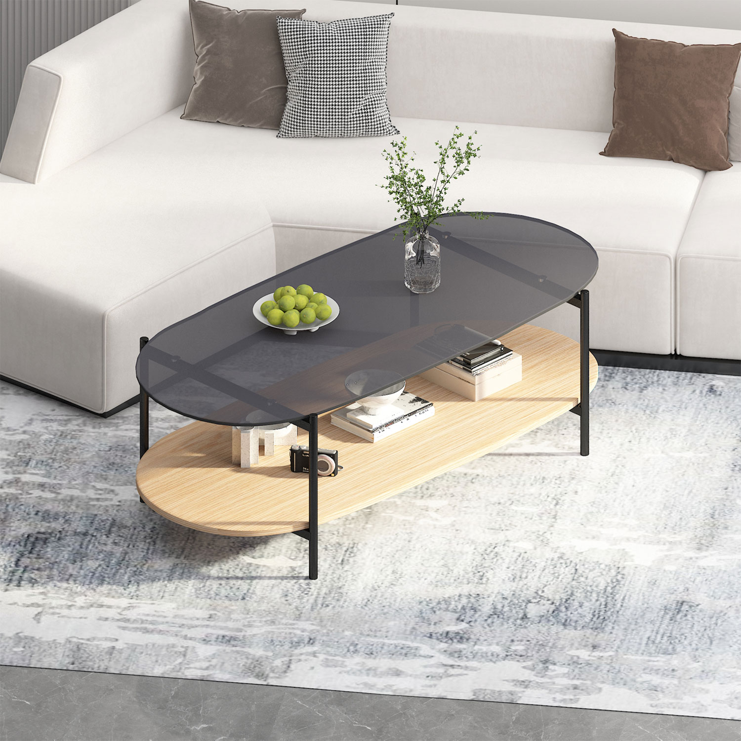 Diivanilaud CINDY 120x55xH40cm, hall klaas/melamiin tamm