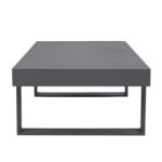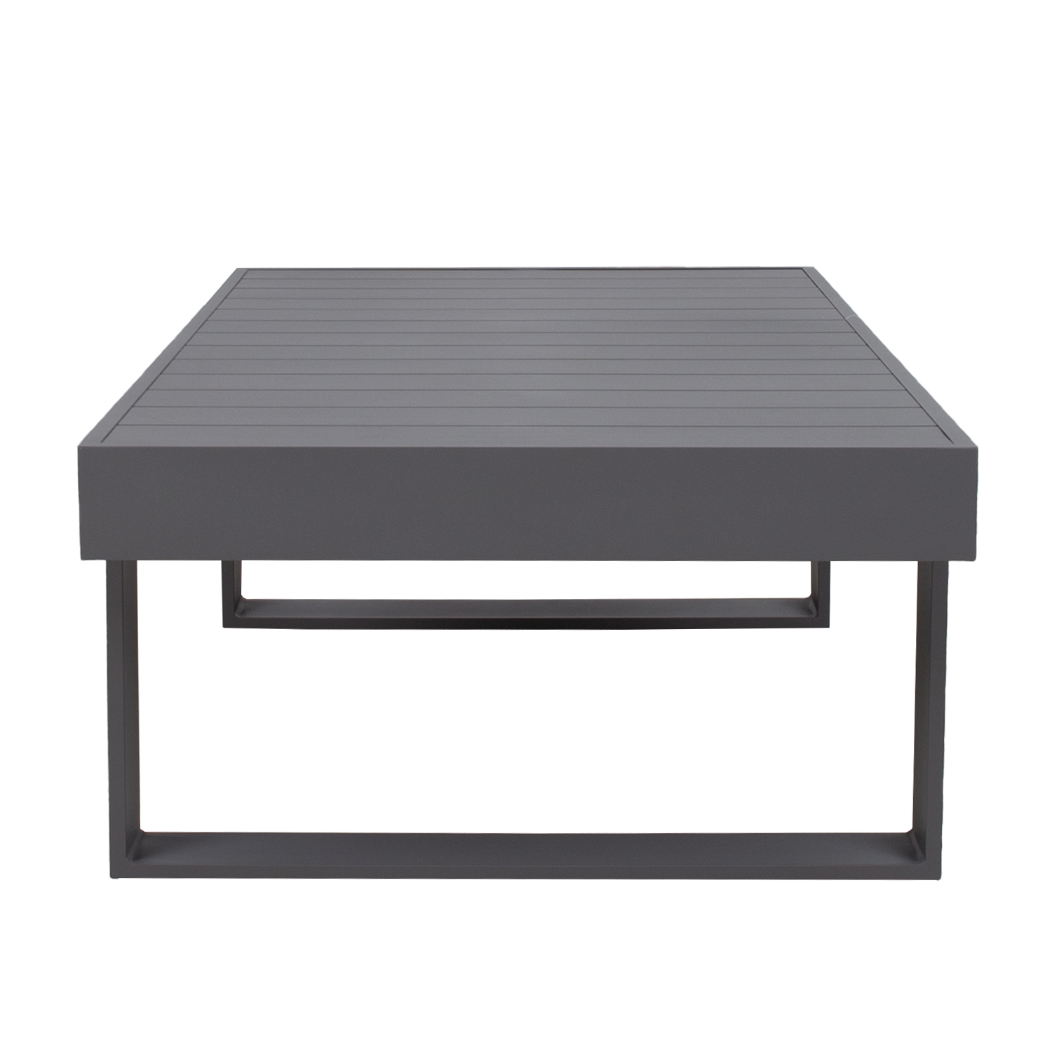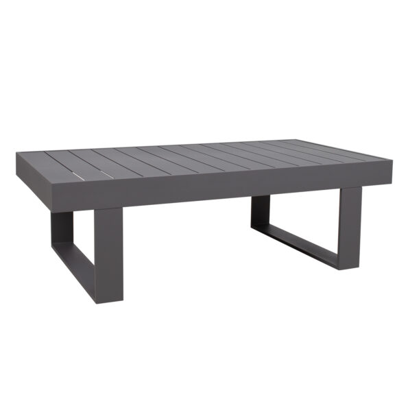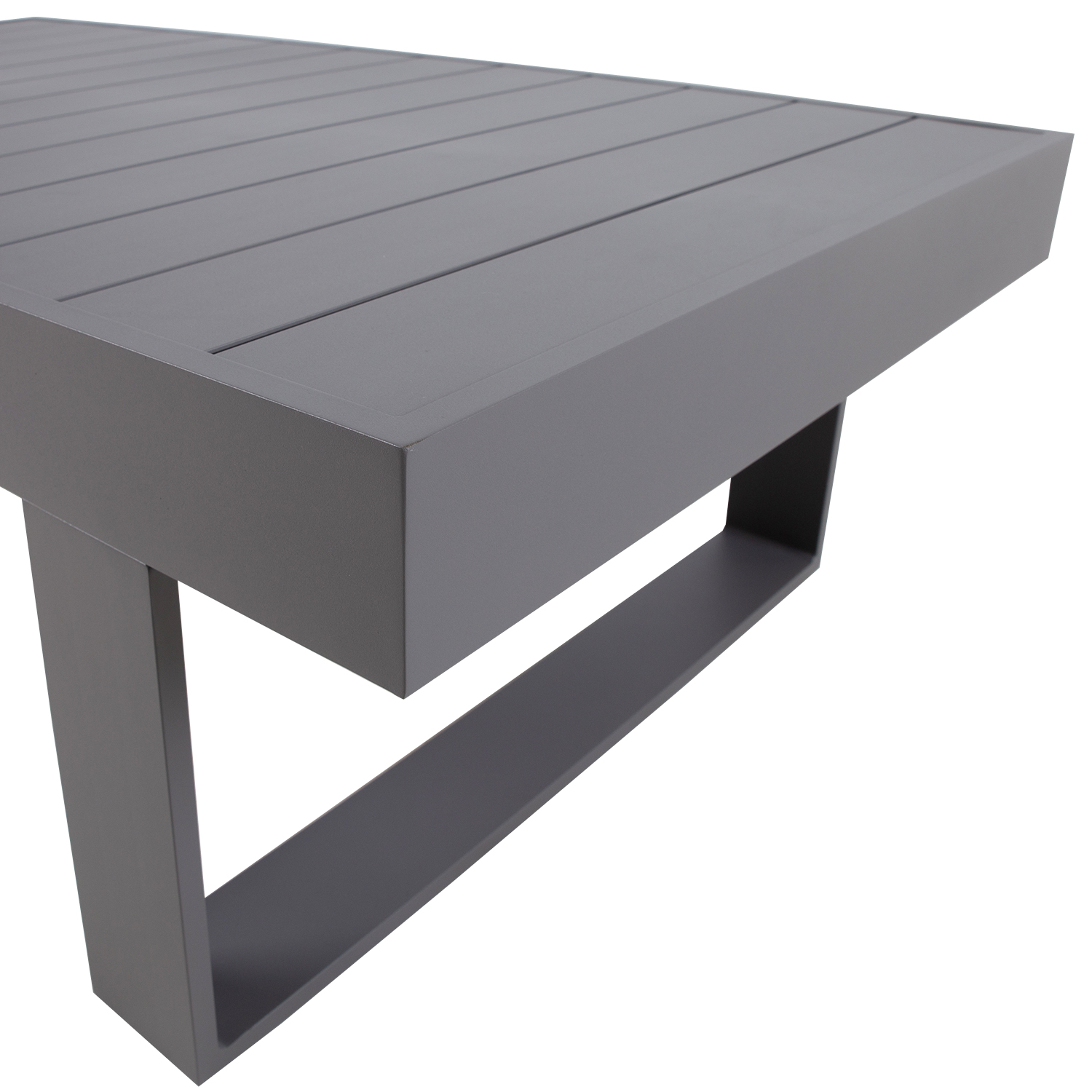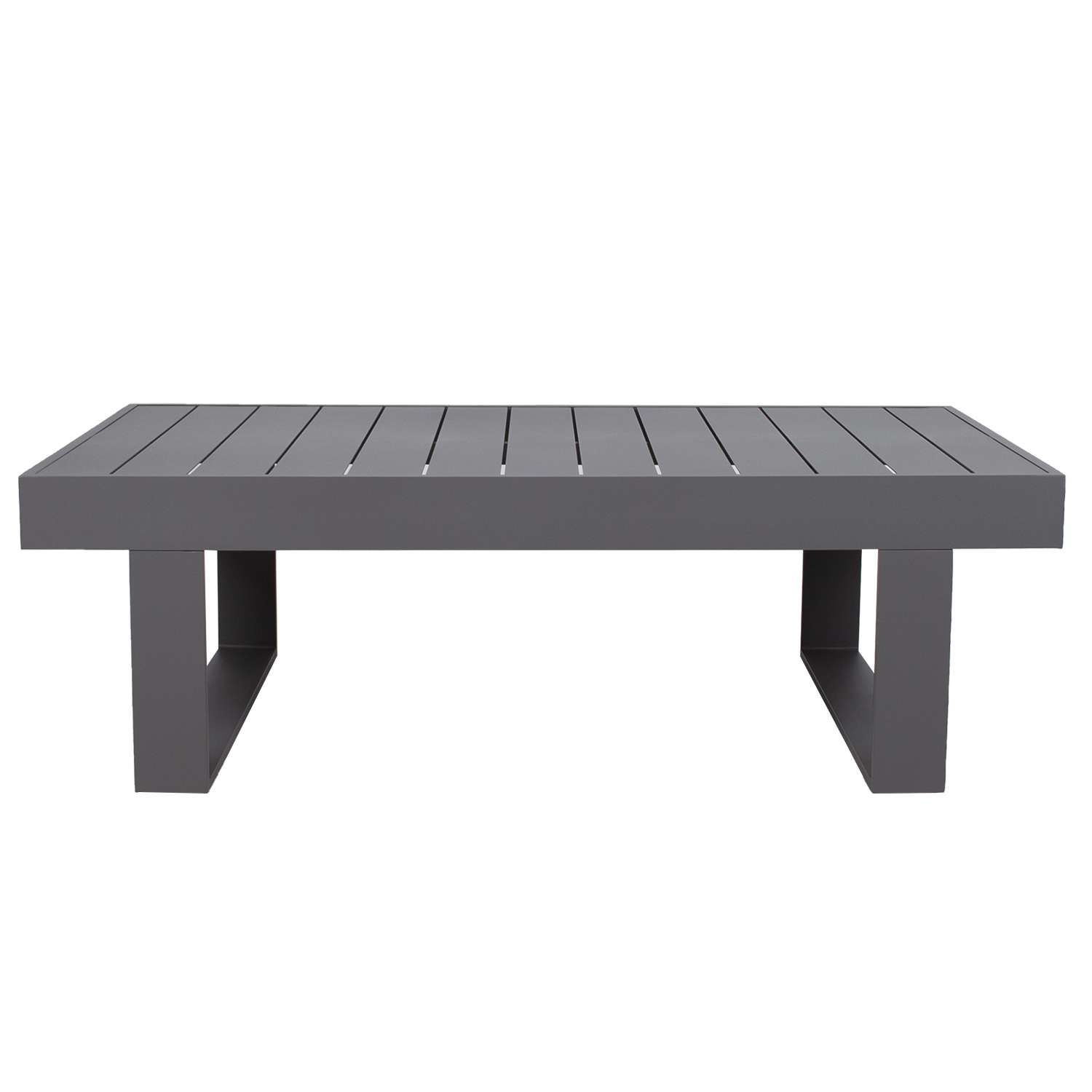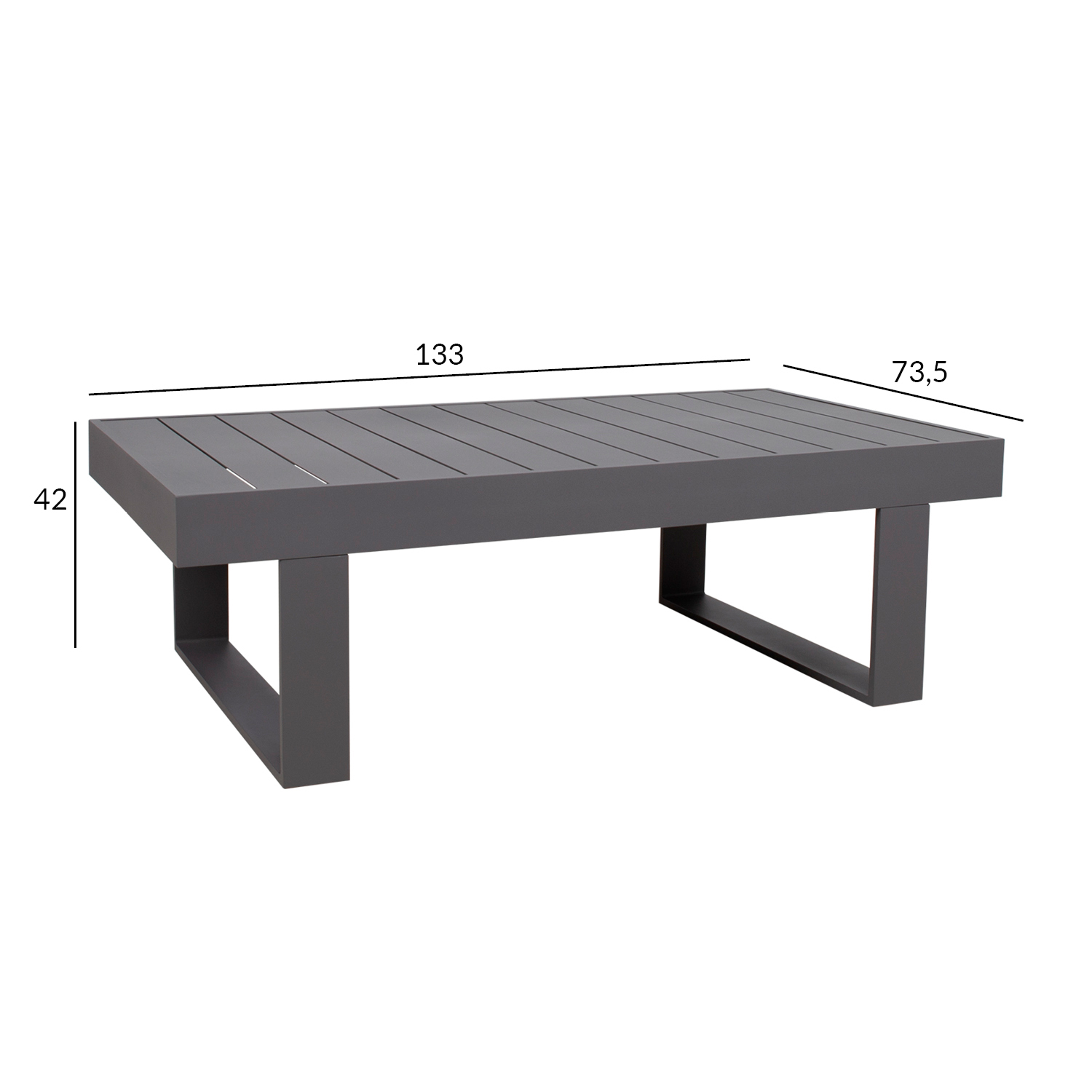 Diivanilaud FLUFFY 133×73,5xH42cm, hall. Lauaplaat ja raam on valmistatud alumiiniumist ja viimistletud halli pulbervärviga. Toode on muutlikes ilmastikutingimustes hästi vastupidav ja lihtsalt hooldatav.