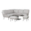 Diivanilaud FLUFFY 133×73,5xH42cm, hall. Lauaplaat ja raam on valmistatud alumiiniumist ja viimistletud halli pulbervärviga. Toode on muutlikes ilmastikutingimustes hästi vastupidav ja lihtsalt hooldatav.