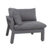 Diivani nurgamoodul GENEVA 81x81xH78cm, hall. Mooduldiivan on suurepärane võimalus luua sobiva kuju ja suurusega istumiskoht, mida on lihtne muuta ja ümber paigutada. Diivani raam on valmistatud alumiiniumist ja kaetud plastikpunutisega. Padjakatted on valmistatud hallist polüesterkangast. Istmepadja mõõdud on 63x63xH10cm, seljatoepatjade mõõdud 71x45x10cm, 50/45x45x10cm. Lukuga suletavad padjakatted on eemaldatavad ja pestavad. Istme kõrgus raami ääreni 33cm, koos padjaga 43cm. Toode on muutlikes ilmastikutingimustes hästi vastupidav ja lihtsalt hooldatav. Kaitset ilmastikuolude eest vajavad ainult padjad. Välitingimustes kasutatava mööbli eluea pikendamiseks soovitame kasutada välimööbli katteid. Moodulite ühendusklambrid ei kuulu komplekti. HOIUSTAMINE: suvehooaja lõppedes soovitame aiamööblit hoiustada siseruumides. Puhastage ja kuivatage mööbel enne hoiule panekut. Kasutage hoiustamiseks kuiva ning hea ventilatsiooniga ruumi.
