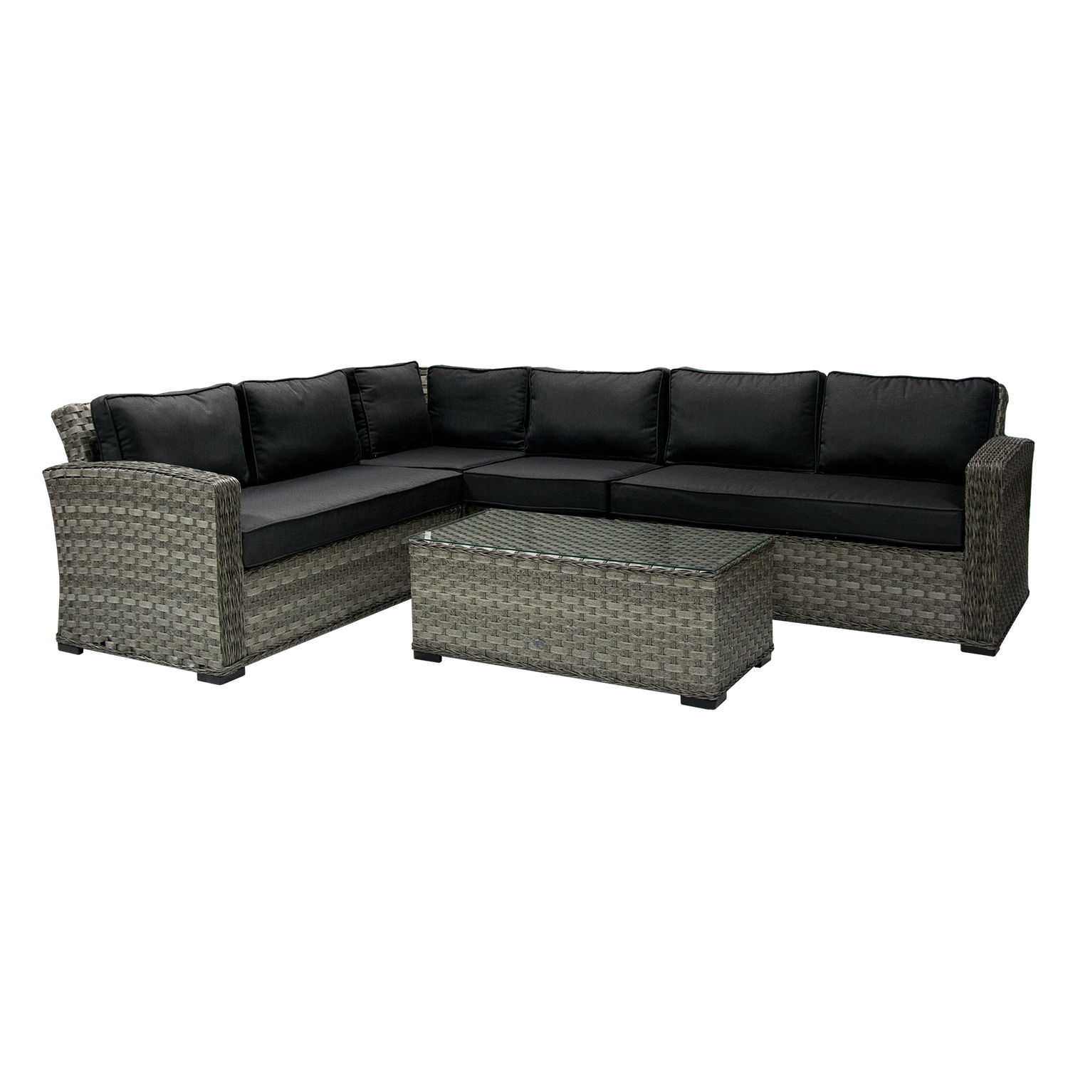 Aiamööbli komplekt TOMSON laud ja nurgadiivan, tiik/hall.