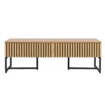 Diivanilaud HAMPTON 2-sahtliga 120x60xH40cm. Laud on valmistatud tammedekooriga melamiinplaadist. Sahtlite esipaneele kaunistavad kitsad tammevärvi MDF liistud mustal taustal. Sahtlid liiguvad metallsiinidel. Laua metallist alusraam on viimistletud musta pulbervärviga.