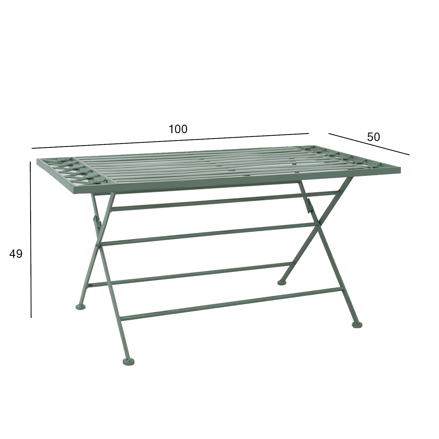 Diivanilaud MINT kokkupandav 100x50xH49cm, antiikroheline. Sepistatud metallist mööbel on stiilne ja vastupidav! Toote viimistlemisel on kasutatud kombineerituna elektroforeeskatet ja pulbervärvi, mis tagab väga hea roostekindluse. Kokkupanduna võtab laud vähe ruumi ning seda on lihtne hoiustada ja teisaldada. HOOLDUS JA HOIUSTAMINE: metallist mööbel on praktiliselt hooldusvaba, piisab regulaarsest puhastamisest. Suvehooaja lõppedes soovitame aiamööblit hoiustada siseruumides. Puhastage ja kuivatage mööbel enne hoiule panekut. Kasutage hoiustamiseks kuiva ning hea ventilatsiooniga ruumi.