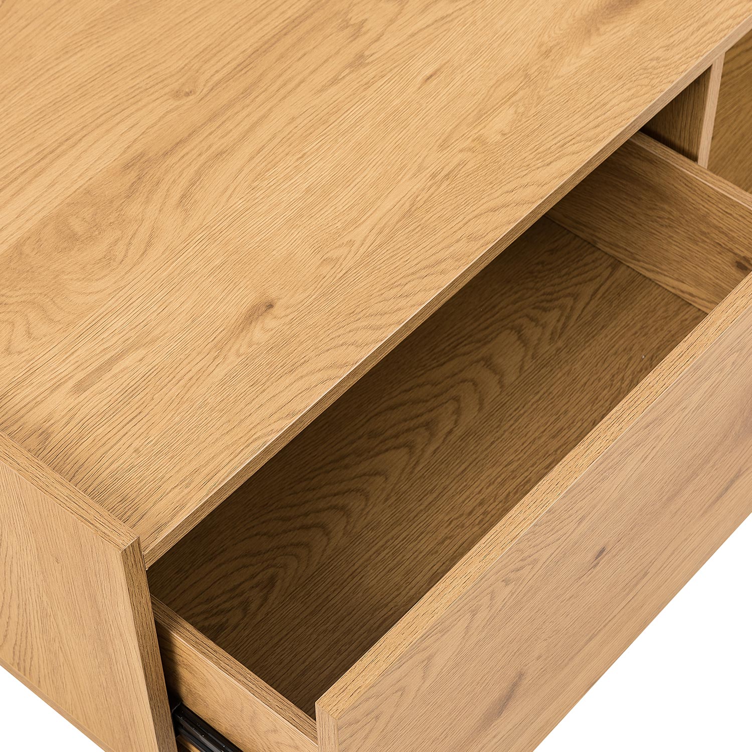 Diivanilaud SACHA 2-sahtli ja 2-avatud riiuliga 120x60xH35cm, tammedekooriga melamiin. Laud on valmistatud melamiinkattega mööbliplaadist. Sahtlid liiguvad metallsiinidel.