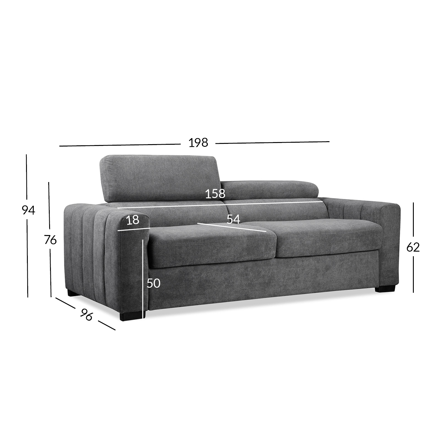 Diivani üldmõõdud on 198x96xH76/94cm.