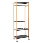 Esikuriiul FOREST 3-riiuliga 60x38xH170cm, naturaalne/must. Ratastel liikuv esikuriiul on praktiline ja mahutab palju. Riiuli karkass on valmistud puidust, metallist riiulid ja ripututoru on viimistletud musta pulbervärviga.