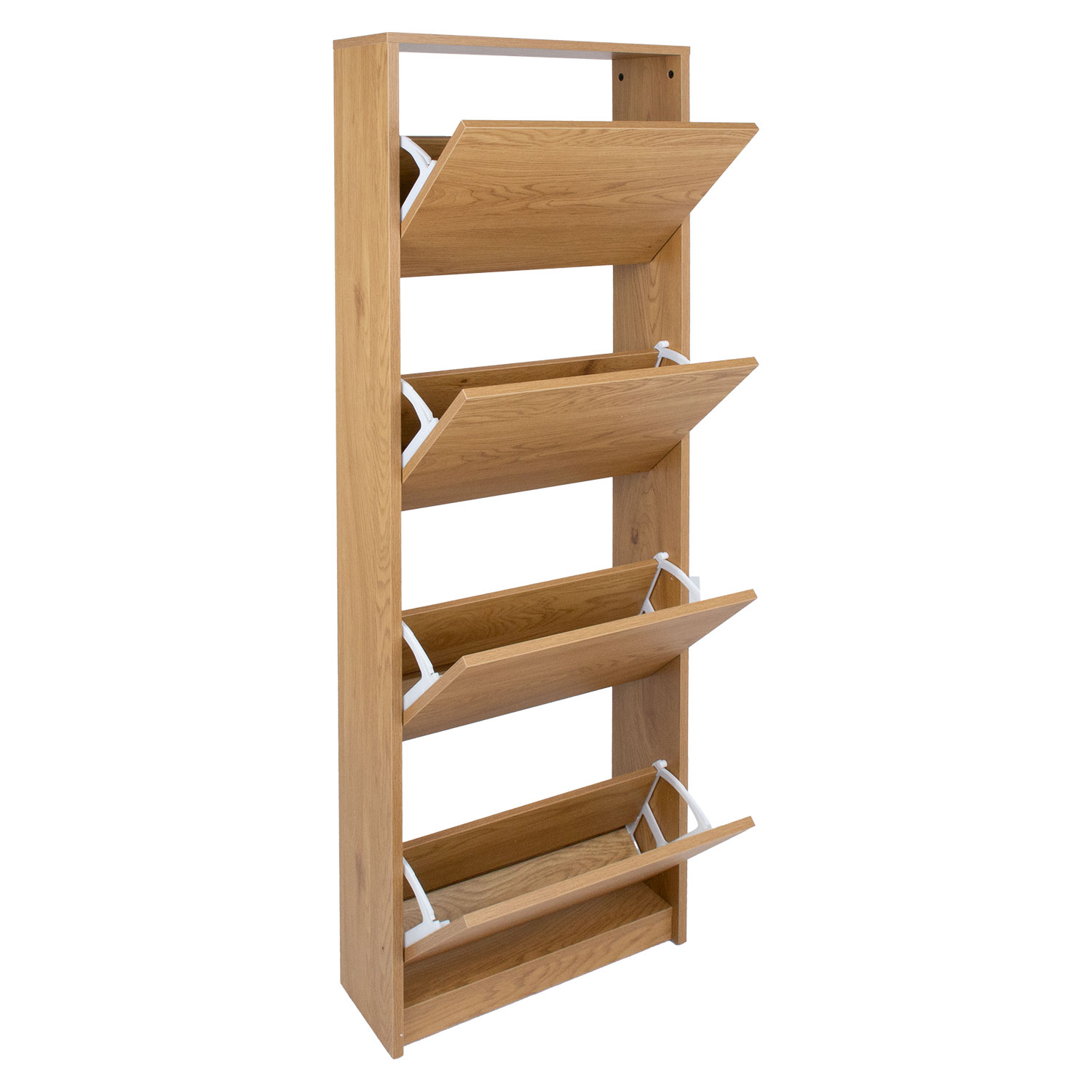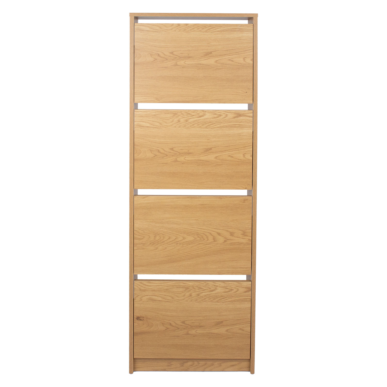 Jalatsikapp AALBORG 49x18xH160cm, melamiin tammedekooriga. Kapil on neli sahtlit jalanõude paigutamiseks. Kapp on valmistatud melamiinplaadist.
