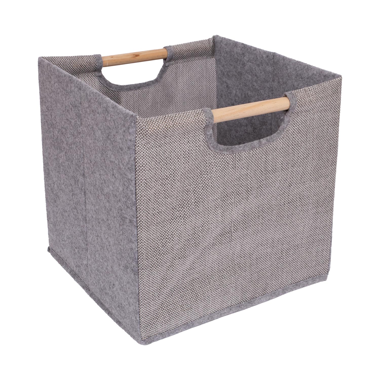 Kokkupandav korv on valmistatud helehallist vildist ja tekstiilist. Puidust naturaalsed käepidemed.