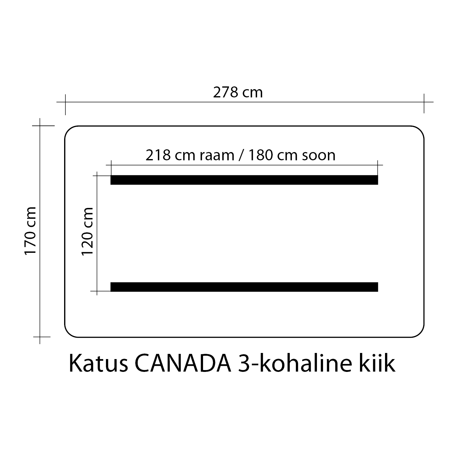 Kiigekatus CANADA 170x278cm, tumeroheline. Sobib kiikedele CANADA, katuseraamile laiusega 120cm. HOOLDUS: määrdunud toote puhastamisel kasutada pesuainet ja loputada jooksva vee all.