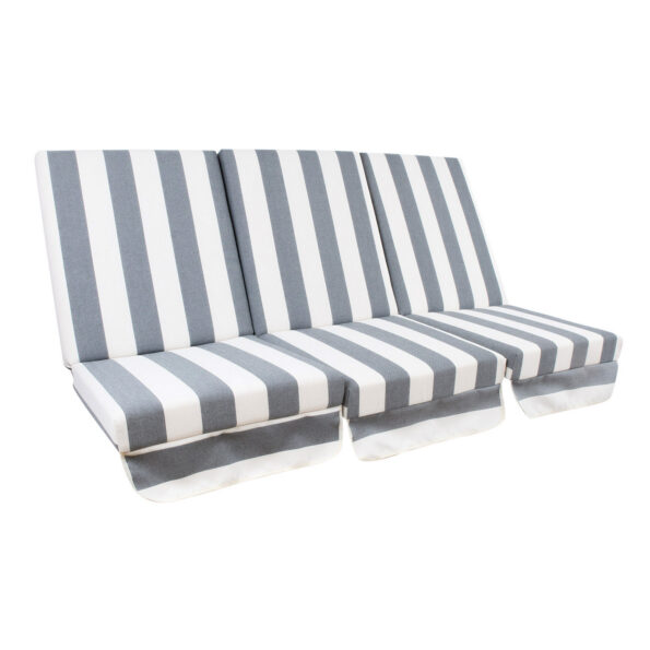 Kiigepadjad MONTREAL 114x52x9cm/3tk, must-valge triibuline. Materjal: 100% polüester. Täidis: purustatud poroloon.