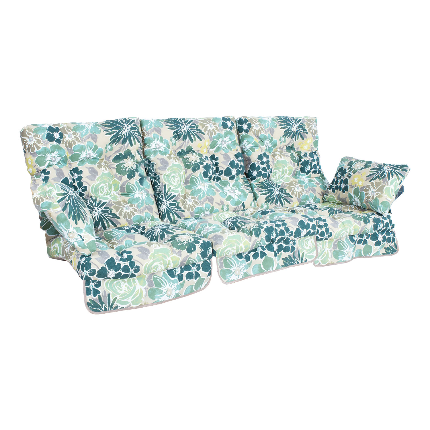 Kiigepadjad ROMA hele lillemuster. Kangas 471, 100% polüester. Ühe padja mõõdud: laius 56cm, pikkus 108cm, paksus 10cm. Komplektis 3tk.