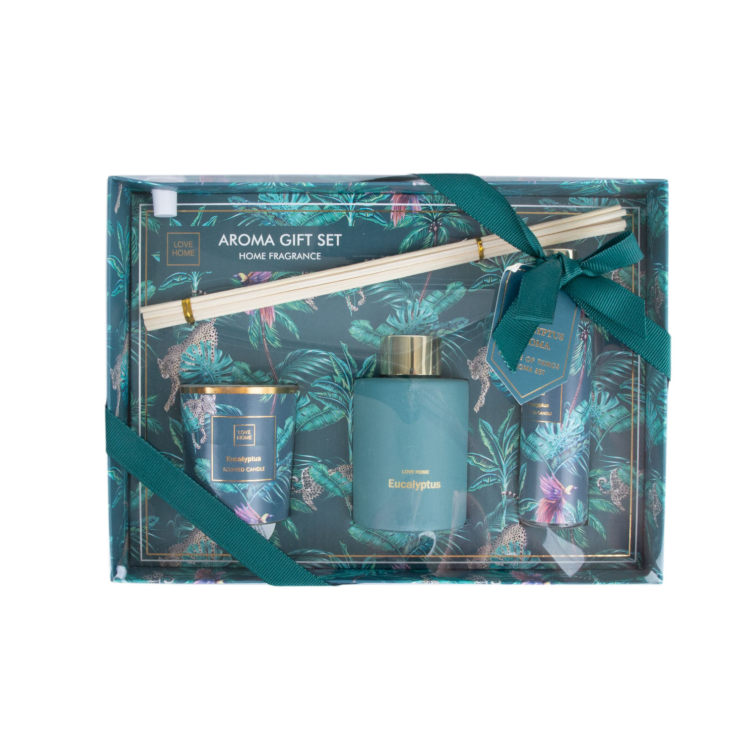 Keraamiline lauaplaat on kaunistatud roheliste lehemotiividega.