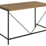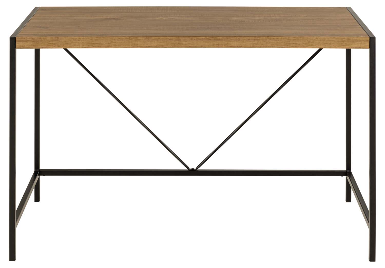 Lihtsa disainiga stiilne kirjutuslaud aitab luua tööruumi, mis inspireerib. Laua disain on inspireeritud industriaalsest stiilist. Lauaplaat on rustikaalse tamme välimusega. Laua stabiilsuse tagab musta värvi terasraam, mida täiendab V-kujuline traatkaunistus. Materjal: melamiin, MDF. Jalad: pulbervärvitud metall. Toote mõõdud on 120x60xH75cm.