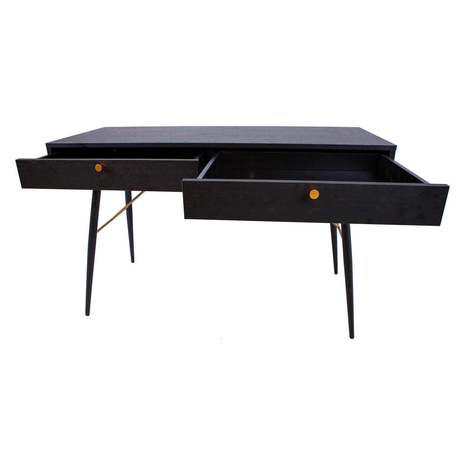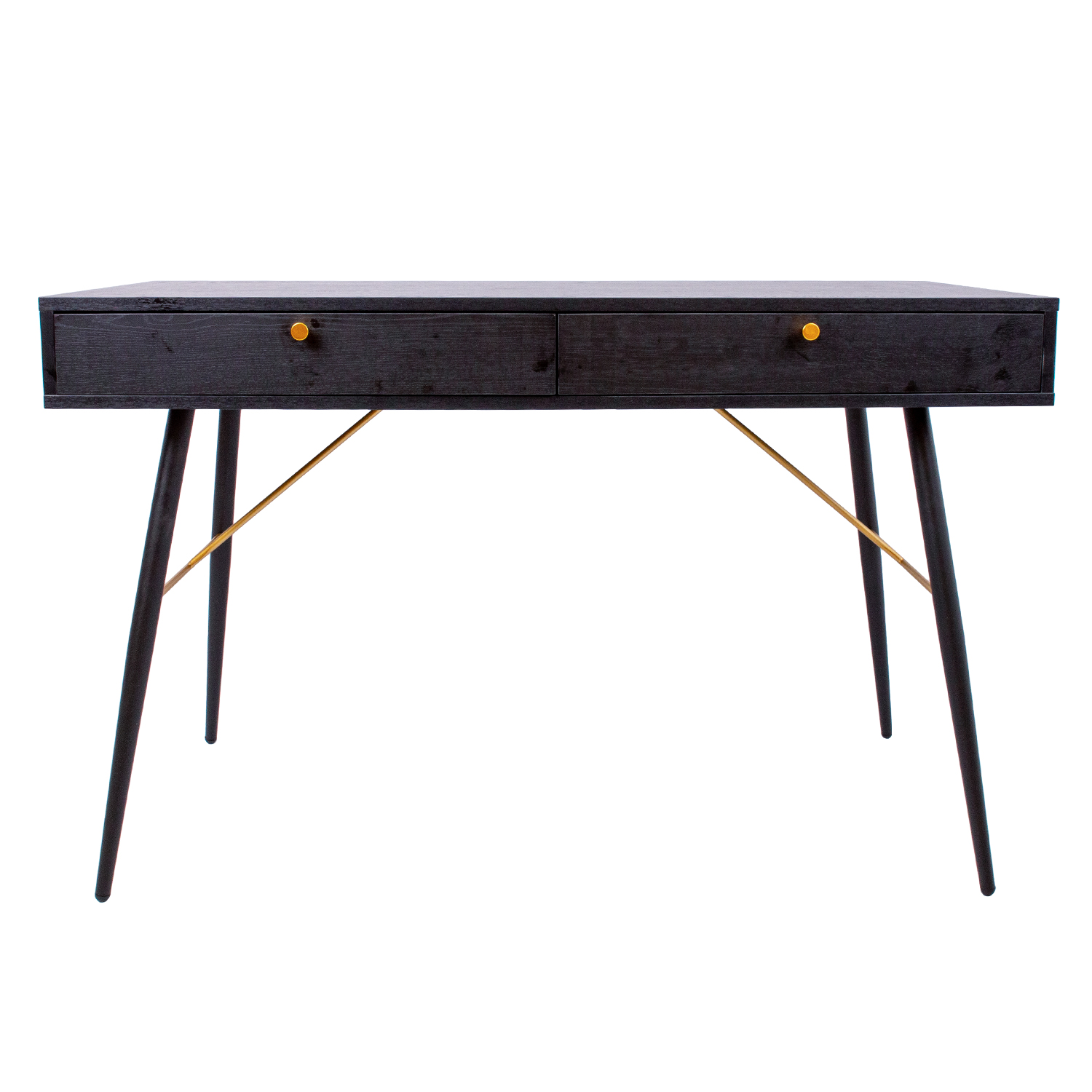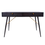 Kirjutuslaud LUXEMBOURG 120x48xH75cm, must melamiin. Laud on valmistatud puidudekooriga melamiinkattega mööbliplaadist. Lauajalgu seovad vasevärvi metallist detailid, mis annavad lauale stiilse välimuse ja samas tagavad aluskonstruktsiooni tugevuse. Lauaplaadi all on kaks sahtlit. Sahtlisiinid on vaikselt sulguvad. Sahtlitel on vasevärvi alumiiniumust nupud. Lauajalgade kõrgus on 62cm.