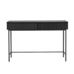 Kirjutuslaud SEQUENCE 120x50xH79cm, must. Lauaplaat ja korpus on valmistatud mööbliplaadist. Sahtlite esiküljed: dekoratiivne MDF ribiplaat. Laud on viimistletud vastupidava polüuretaanvärviga. Laua jalad ja alusraam on valmistatud metallist ja kaetud pulbervärviga.
