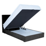 Voodil on pocket-vedrustusega madrats, 210 vedru/m2. Vedrude kõrgus on 13cm. Vedrusid katab 23kg/m3 poroloonikiht, mis on 2cm paks. Madratsi jäikus: jäik. Kattemadratsi sisuks on 23kg/m3 poroloon. Kattemadrats on kaetud 200g/m2 polüestervatiiniga. Voodi all on mahukas panipaik, mis on valmistatud täispuidust ja lamineeritud puitlaastplaadist. Selle küljed on kaetud porolooniga. Voodi karkass on valmistatud täispuidust. Voodiraam on kaetud kangaga, 30 000 Martindale´i. Komplekti kuulub voodipeats, mis on voodiga sama lai. Peatsi paksus on 7cm. Kaasas on ühenduselemendid peatsi kinnitamiseks voodi külge. Voodil on neli plastikust jalga, mis on musta värvi. Voodijalgade kõrgus on 2,5cm, kattemadratsi kõrgus 4cm, madratsi kõrgus 16cm. Voodi magamispinna kõrgus on 52cm. Toote mõõdud on 123x210xH114,5cm. Toode on valmistatud EL-is.