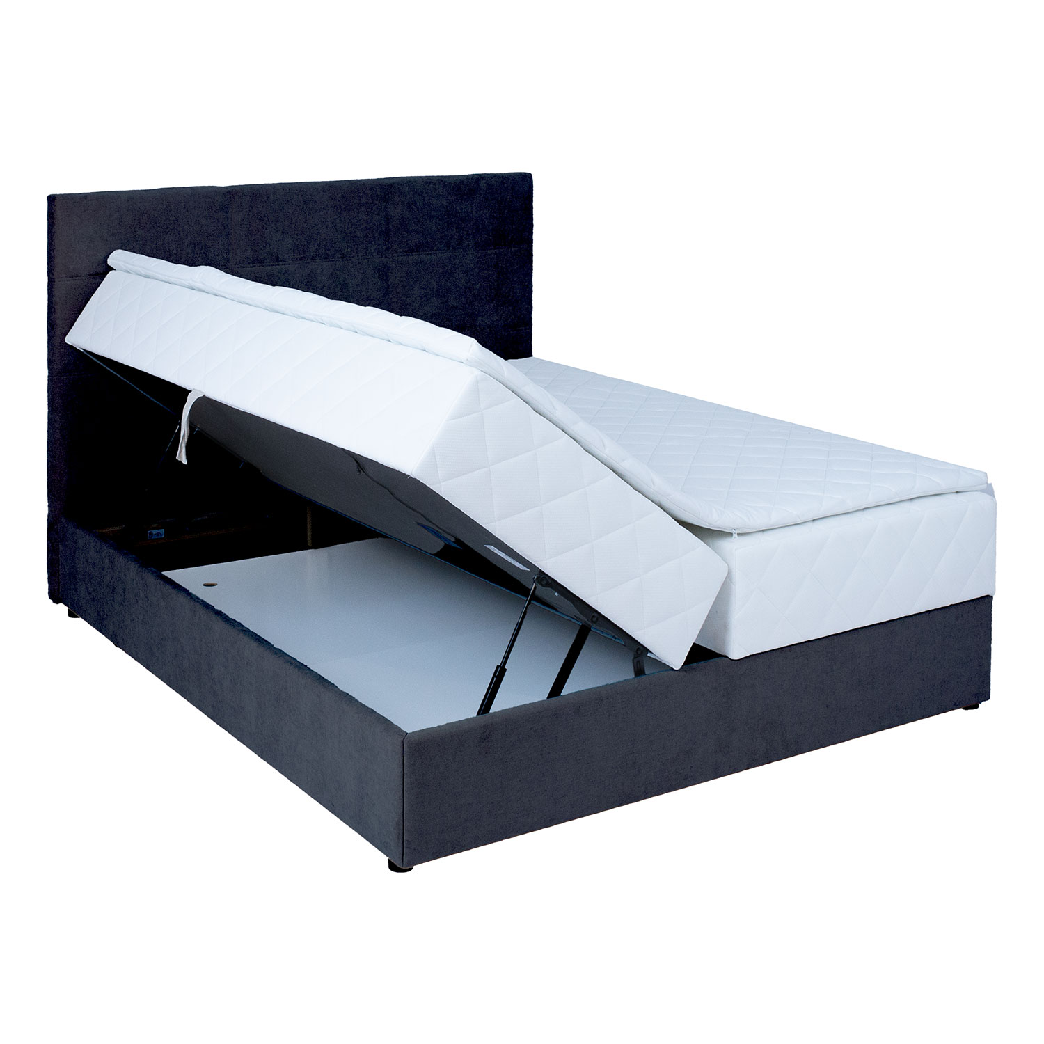 Voodil on pocket-vedrustusega madrats, 210 vedru/m2. Vedrude kõrgus on 13cm. Vedrusid katab 23kg/m3 poroloonikiht, mis on 2cm paks. Madratsi jäikus: jäik. Kattemadratsi sisuks on 23kg/m3 poroloon. Kattemadrats on kaetud 200g/m2 polüestervatiiniga. Voodi all on mahukas panipaik, mis on valmistatud täispuidust ja lamineeritud puitlaastplaadist. Selle küljed on kaetud porolooniga. Voodi karkass on valmistatud täispuidust. Voodiraam on kaetud kangaga, 30 000 Martindale´i. Komplekti kuulub voodipeats, mis on voodiga sama lai. Peatsi paksus on 7cm. Kaasas on ühenduselemendid peatsi kinnitamiseks voodi külge. Voodil on neli plastikust jalga, mis on musta värvi. Voodijalgade kõrgus on 2,5cm, kattemadratsi kõrgus 4cm, madratsi kõrgus 16cm. Voodi magamispinna kõrgus on 52cm. Toote mõõdud on 163x210x114,5cm. Toode on valmistatud EL-is.