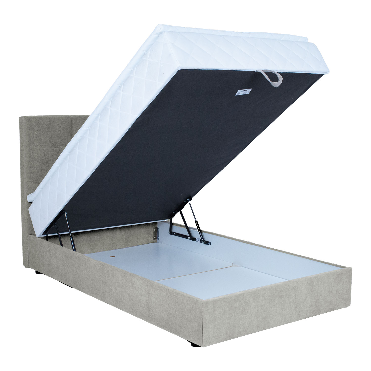 Voodil on pocket-vedrustusega madrats, 210 vedru/m2. Vedrude kõrgus on 13cm. Vedrusid katab 23kg/m3 poroloonikiht, mis on 2cm paks. Madratsi jäikus: jäik. Kattemadratsi sisuks on 23kg/m3 poroloon. Kattemadrats on kaetud 200g/m2 polüestervatiiniga. Voodi all on mahukas panipaik, mis on valmistatud täispuidust ja lamineeritud puitlaastplaadist. Selle küljed on kaetud porolooniga. Voodi karkass on valmistatud täispuidust. Voodiraam on kaetud kangaga, 30 000 Martindale´i. Komplekti kuulub voodipeats, mis on voodiga sama lai. Peatsi paksus on 7cm. Kaasas on ühenduselemendid peatsi kinnitamiseks voodi külge. Voodil on neli plastikust jalga, mis on musta värvi. Voodijalgade kõrgus on 2,5cm, kattemadratsi kõrgus 4cm, madratsi kõrgus 16cm. Voodi magamispinna kõrgus on 52cm. Toote mõõdud on 93x210xH114,5cm. Toode on valmistatud EL-is.
