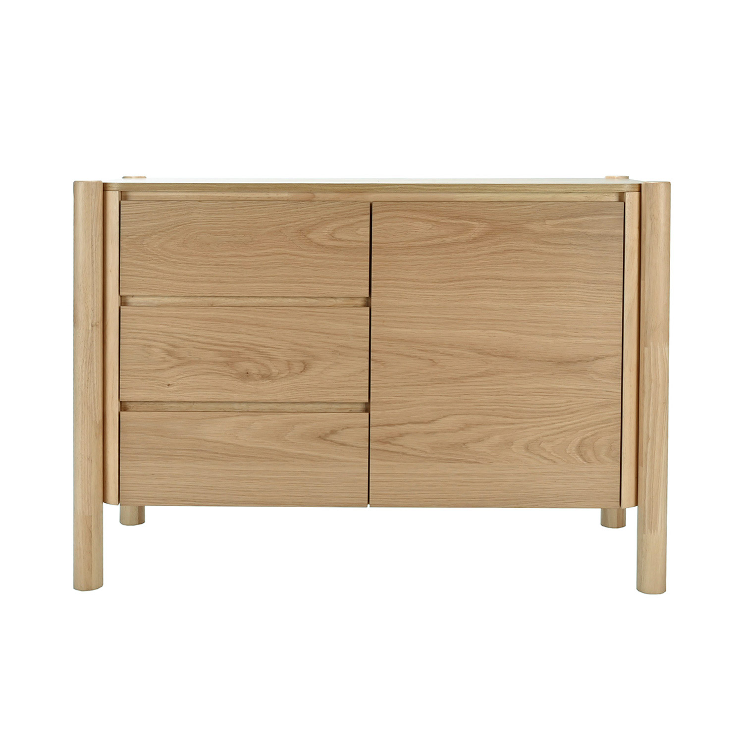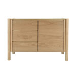 Kummuti korpus ja sahtlite ning ukse paneel on valmistatud mööbliplaadist ja kaetud naturaalse tammespooniga.