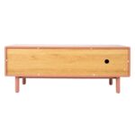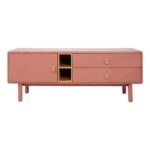 Kummut IRIS 2-sahtli ja uksega 140x40xH55cm, roosa. Kummut on valmistatud 18mm MDF plaadist. Jalad ja alusraam on valmistatud täispuidust. Kummut on viimistletud vastupidava polüuretaanvärviga. Sahtlitel on nahast käepidemed. Avatud vaheriiul on vooderdatud heleda puiduvärvi plaadiga. Kummutil on ümarad välisservad.