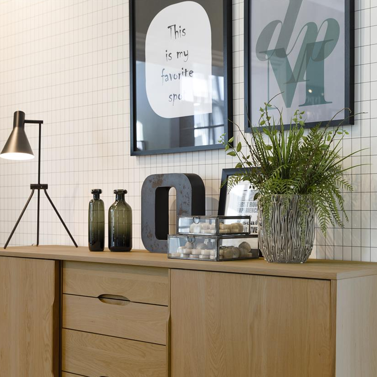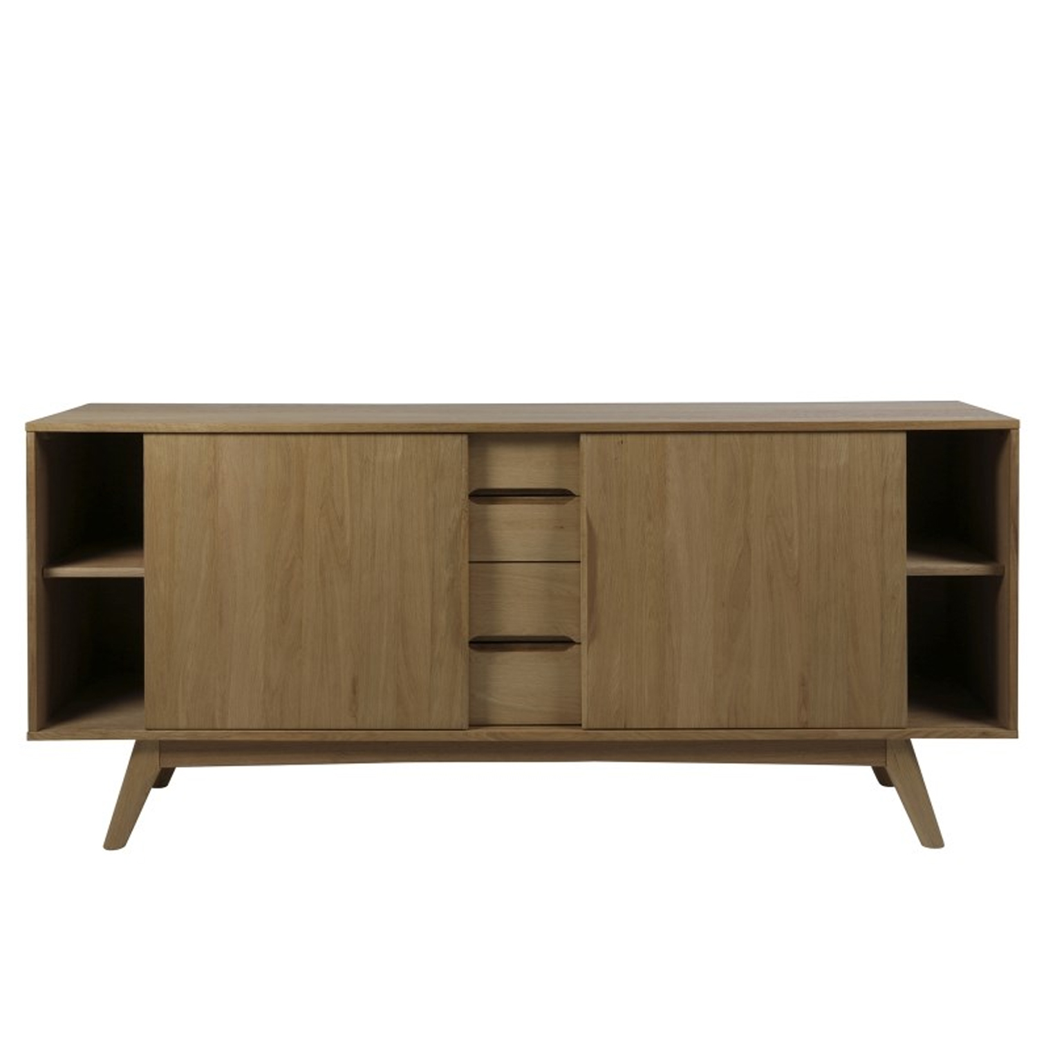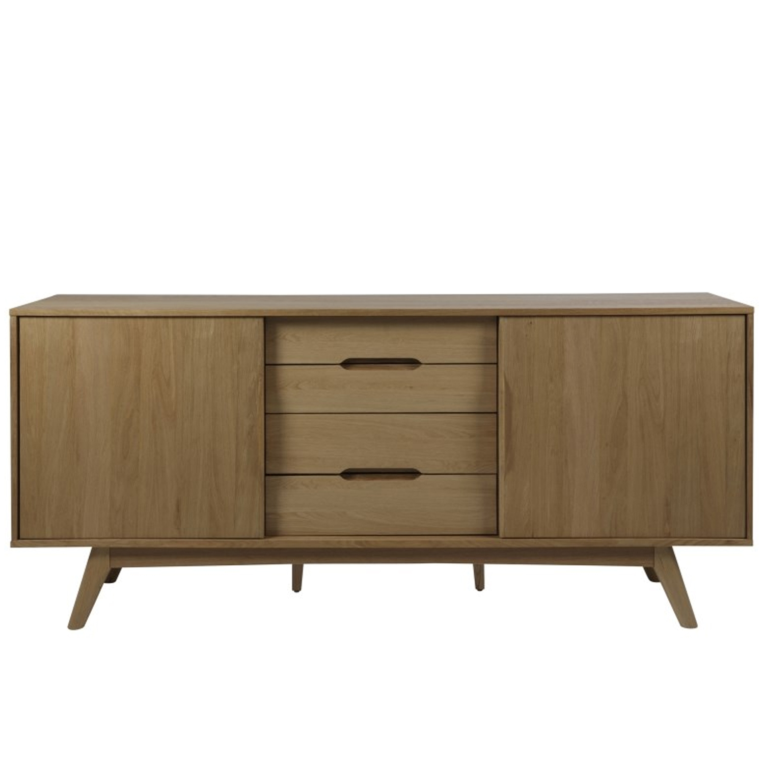 Retro-hõnguline kummut, mis mõjub samal ajal kaasaegselt. Nurga all olevad jalad annavad kummutile iseloomuliku nostalgilise ilme. 4 mahukat sahtlit ja 4 riiulit annavad palju lisaruumi. Integreeritud käepidemed ja õlitatud tammepuit muudavad kummuti kaasaegseks. Materjal: tammespoon; alus: täispuit, viimistlus: õlitatud. Mõõdud on 180x44xH84cm.