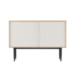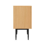 Kummuti korpus on valmistatud mööbliplaadist, mille väliskülg on kaetud naturaalse tammespooniga ja sisemine pool on valge melamiinkattega. Uksed on valmistatud MDF plaadist, mille väliskülje geomeetriline disain mängib puidusüü suunaga ning toob elavalt esile loodusliku materjali ilu.