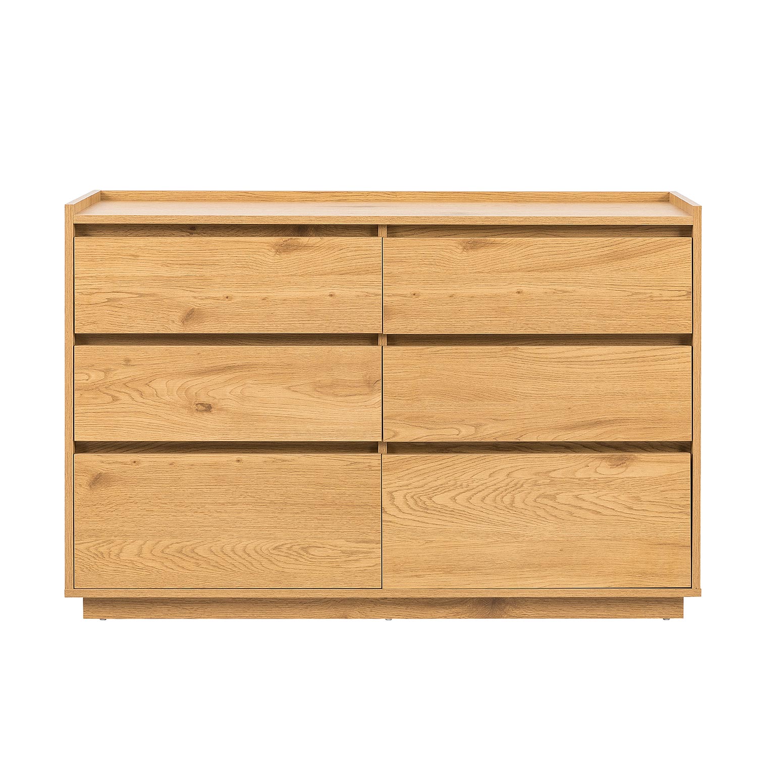 Kummut SACHA 6-sahtliga 120x40xH80cm, tammedekooriga melamiin. Kummut on valmistatud melamiinkattega mööbliplaadist. Sahtlid liiguvad metallsiinidel.