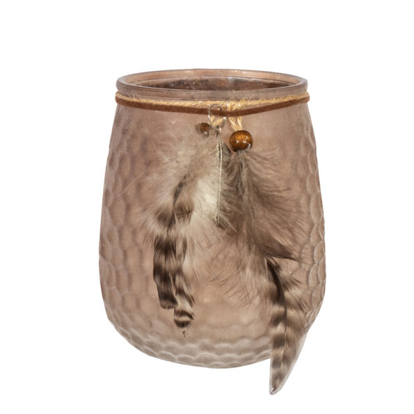Küünlahoidja FROST LULU D12xH14cm, mattpruun, sulgedega