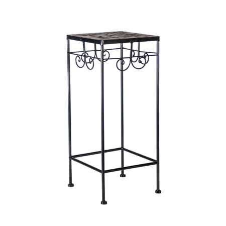 Lillepostament MOSAIC 20x20xH50cm. Pealmine mosaiikplaat plaat on kaunistatud pruunides ja hallides toonides keraamiliste plaatidega. Metallist alusraam ja jalad on viimistletud musta pulbervärviga. Toode sobib kasutamiseks nii sise- kui väli tingimustes.
